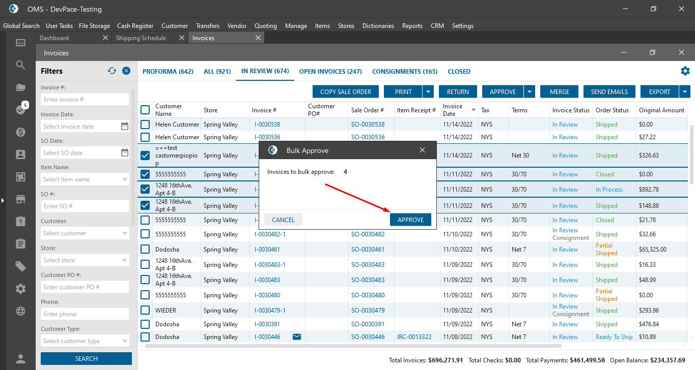 - after clicking on the Bulk Approve button -> the Bulk Approve pop-up is opened: