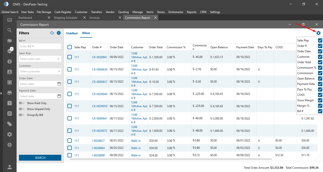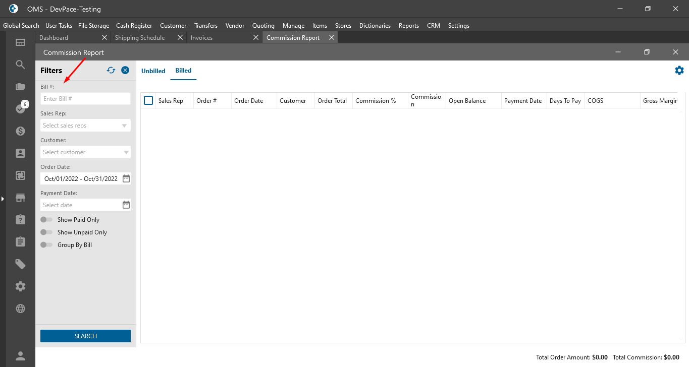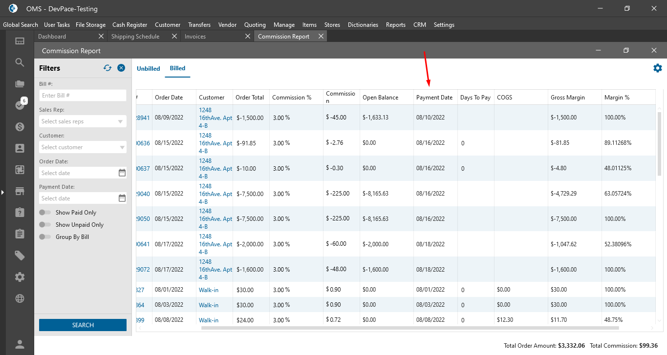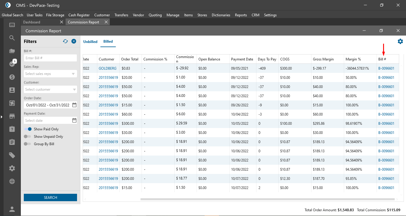- on “Billed” tab -> by default when you are opening up the commission date range is selected “Last month” ;