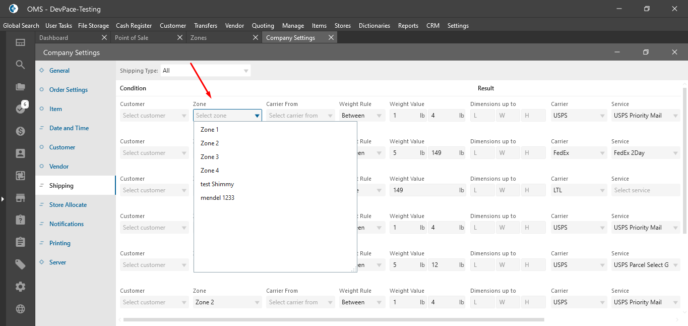 - if Zone was selected in the rule and on the ship order was added Customer whose Shipping address zip code on order is in the zone zip code range -> the rule is applied to the ship order.