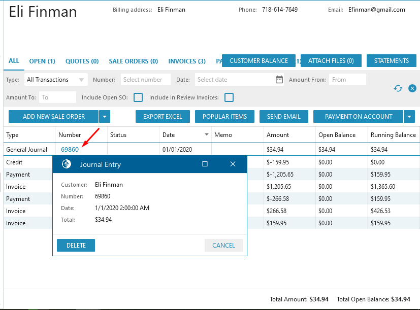 - Journal Entries Number is clickable;
