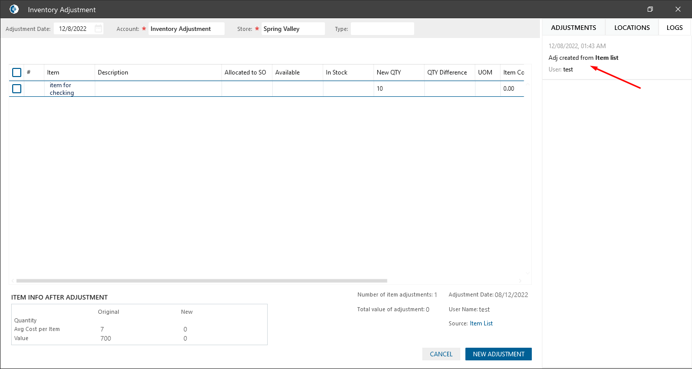 - if Inv Adj was created from Shipping for eCommerce list or shipping schedule: