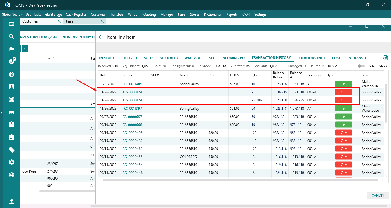 - from the Datagrid is hidden all transactions with type “Allocated to SO”;