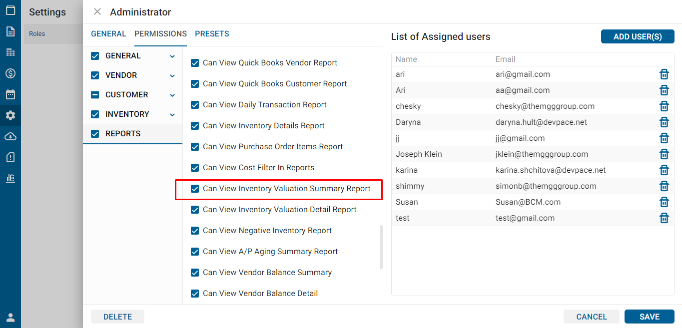 - The “Inventory Valuation Summary” Report is hidden from the Report Menu List form.