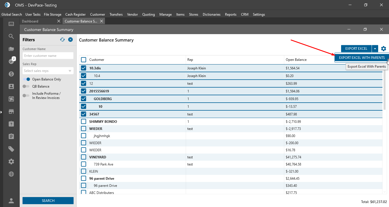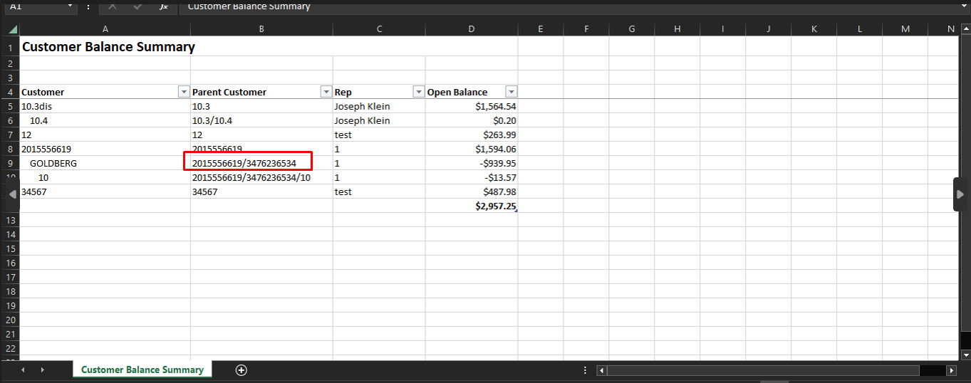 - in the Excel file are displayed Customers -> Parents and Childs in the hierarchy;