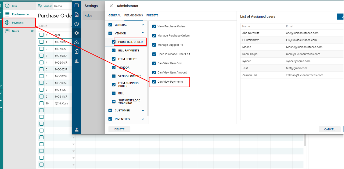 - On the Purchase Order edit form isn’t displayed “Payments” tab;