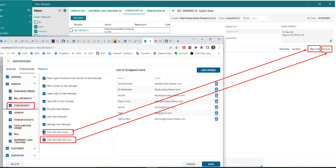- On the Item Receipt quick view form -> In the Datagrid isn’t displayed “Item Amount” column.