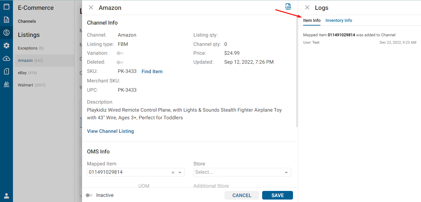 - Text: “Mapped Item BC-12303 was added to Channel”: