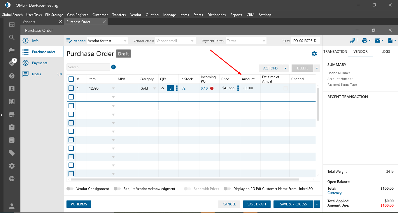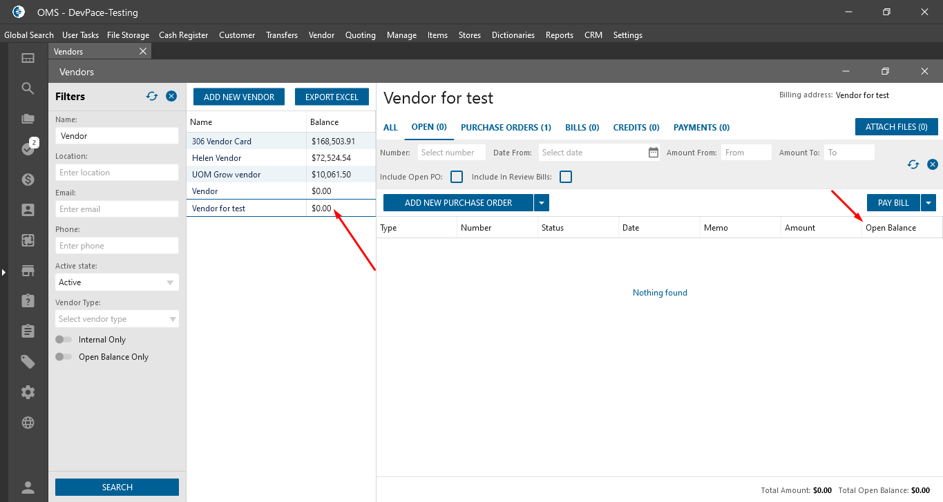 - Observe Vendor Balance on left bar and at “Open bucket“.