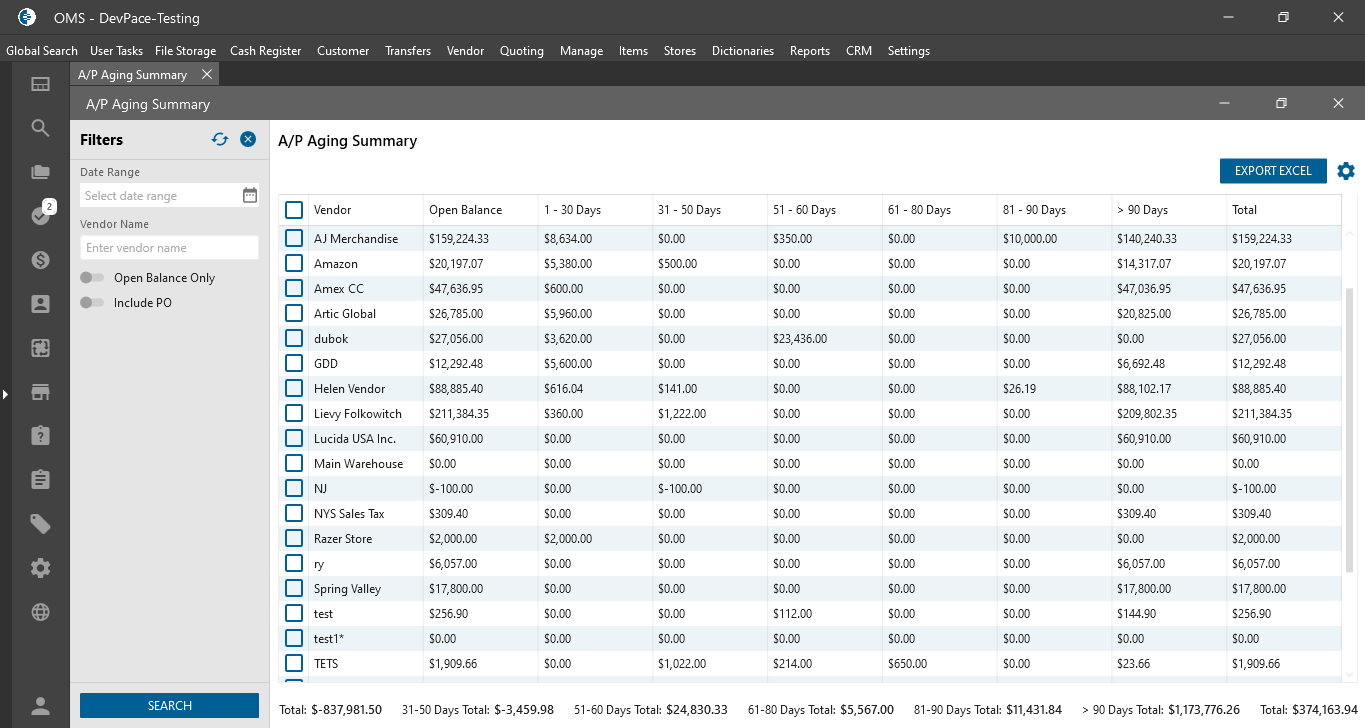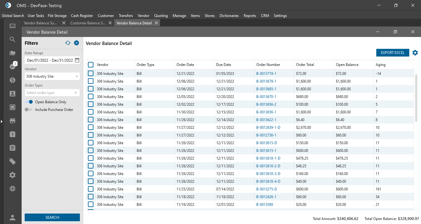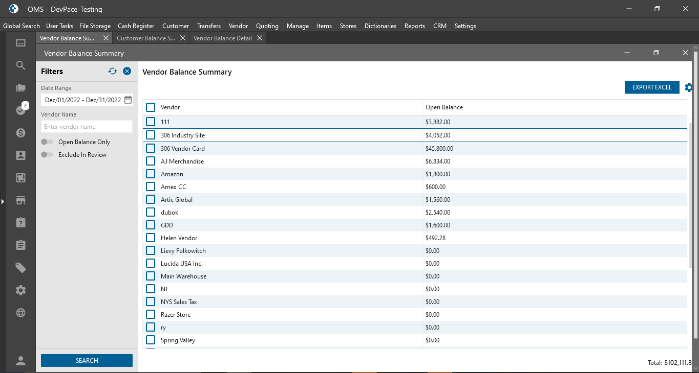 - the List of Vendor Balances based on the Vendor Transactions is displayed;