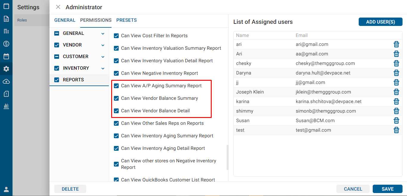 - “Vendor Balance Summary” Report is hidden from the Report Menu List form;