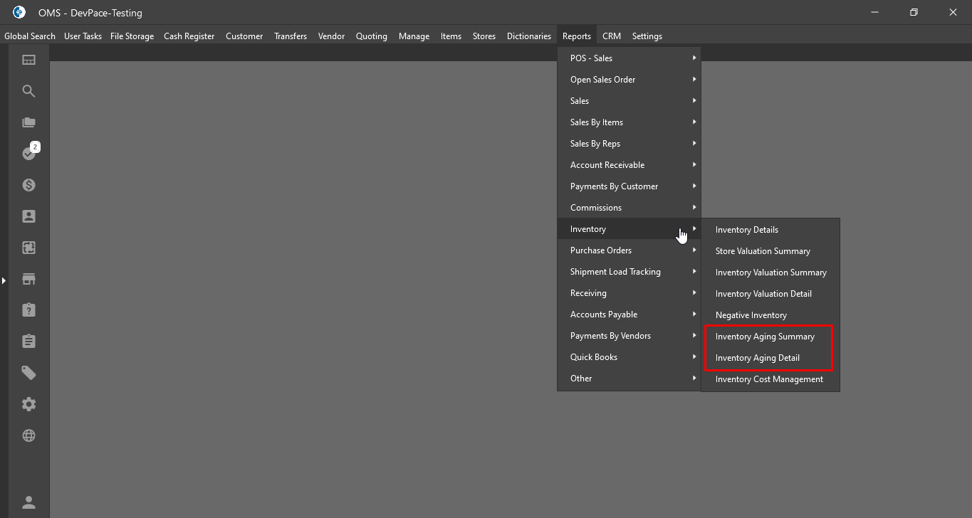 - The “Inventory Aging Detail” Report is hidden from the Report Menu List form.