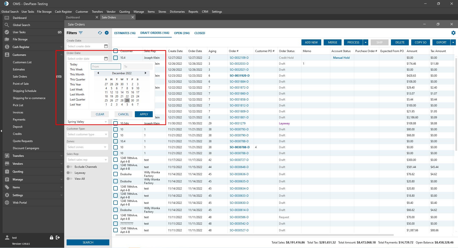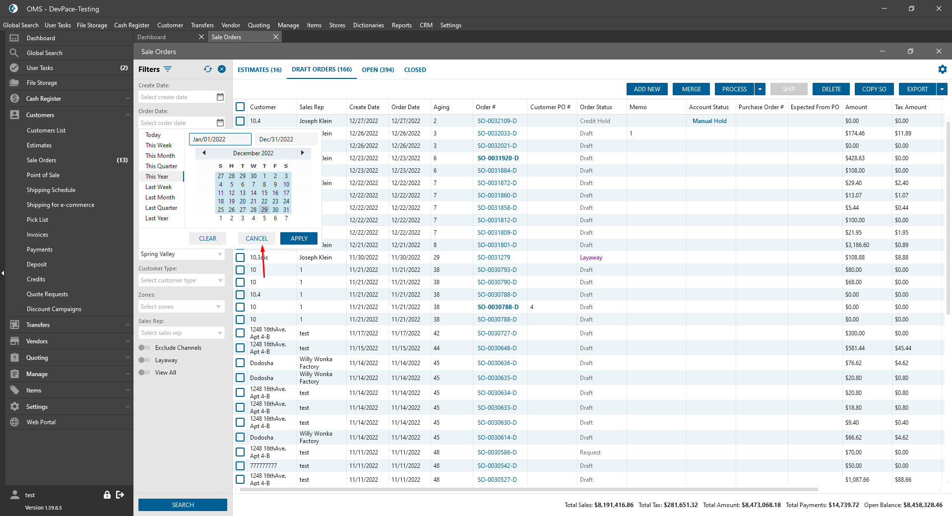 - Calendar filter -> Select one of the range (for ex. Today) -> press “Cancel“;
