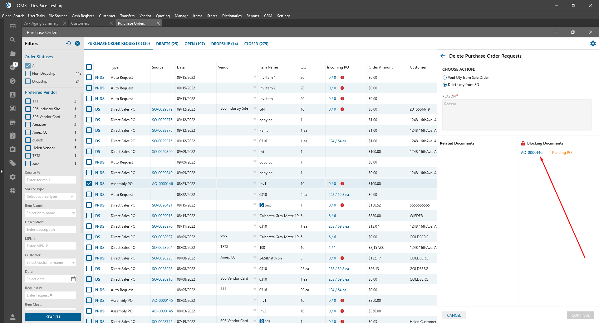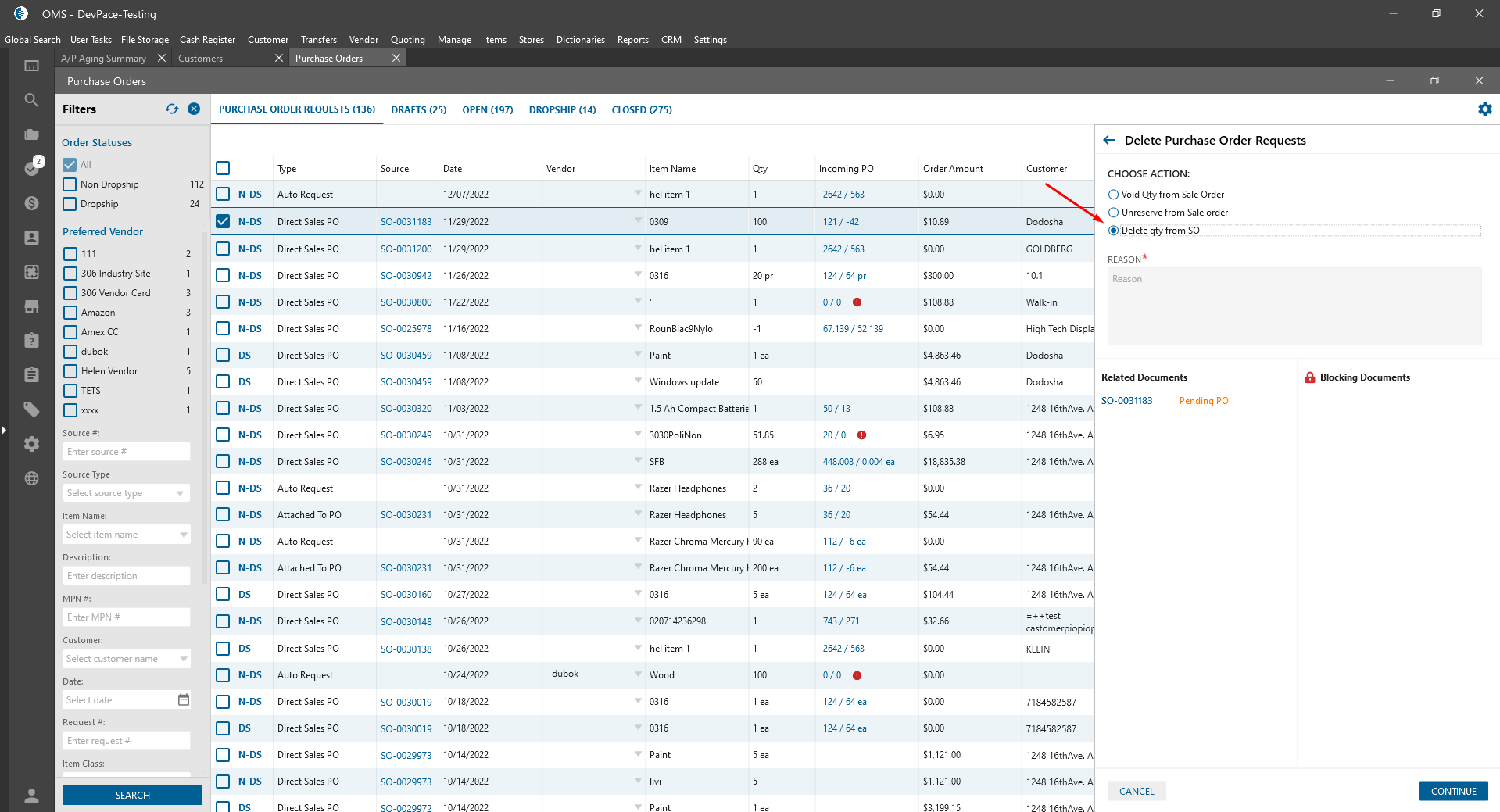 - if was checked at least one POR with the type “Direct Sales PO” -> the action is displayed;