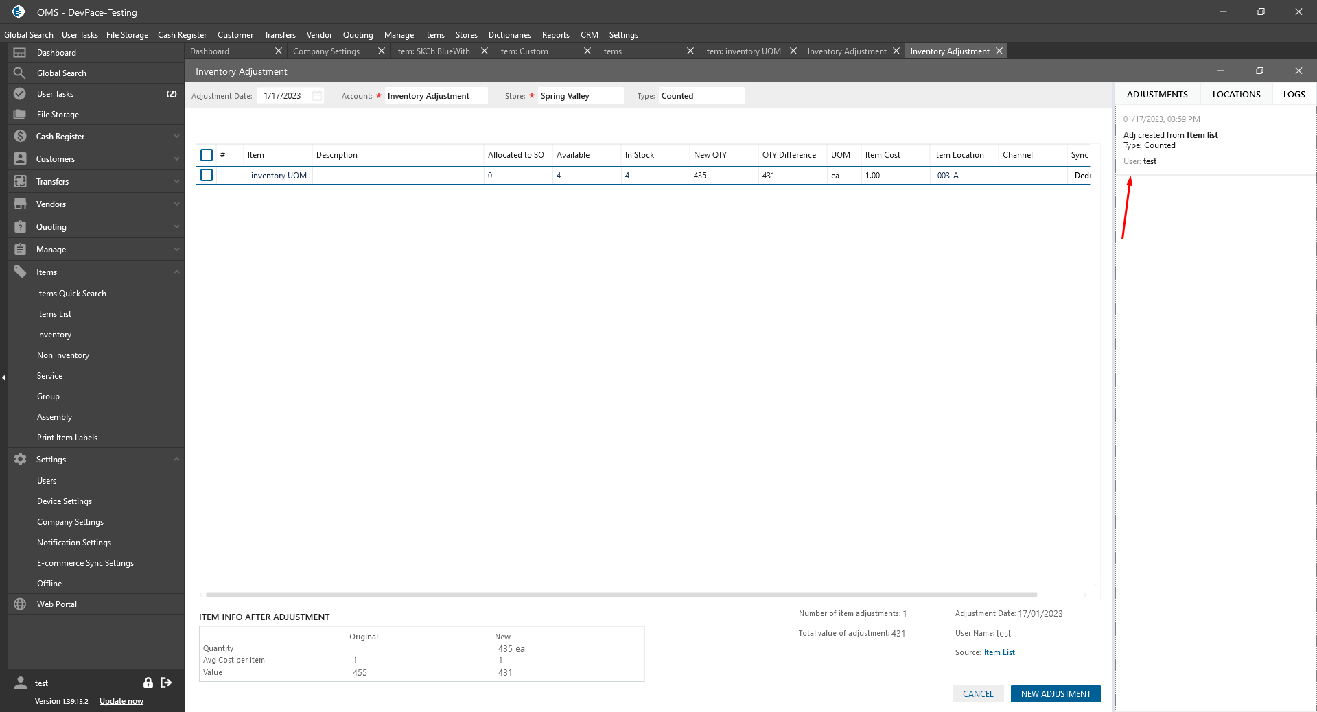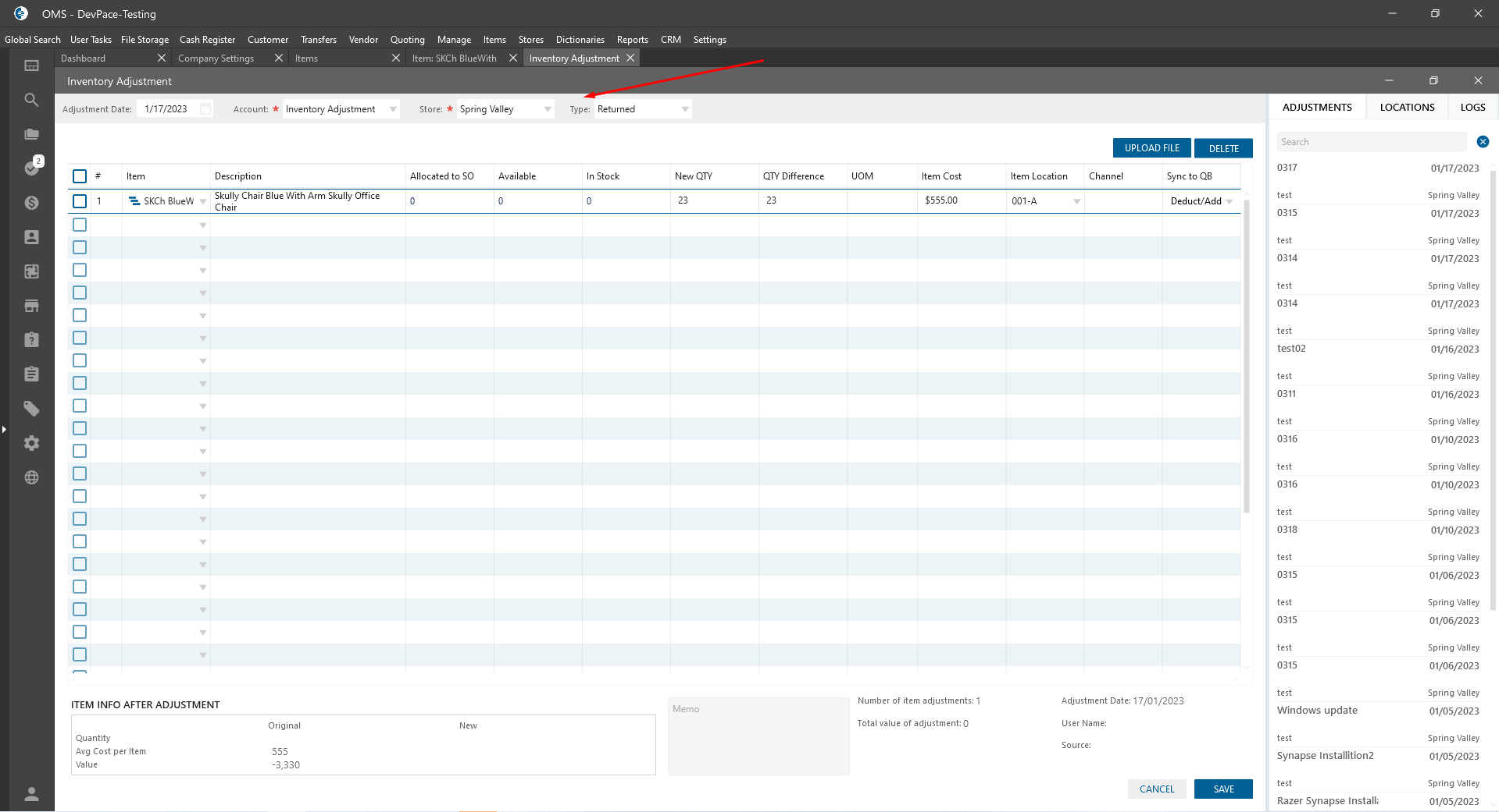 - selected by default if Inv adj was created from OMS Web for Channel;