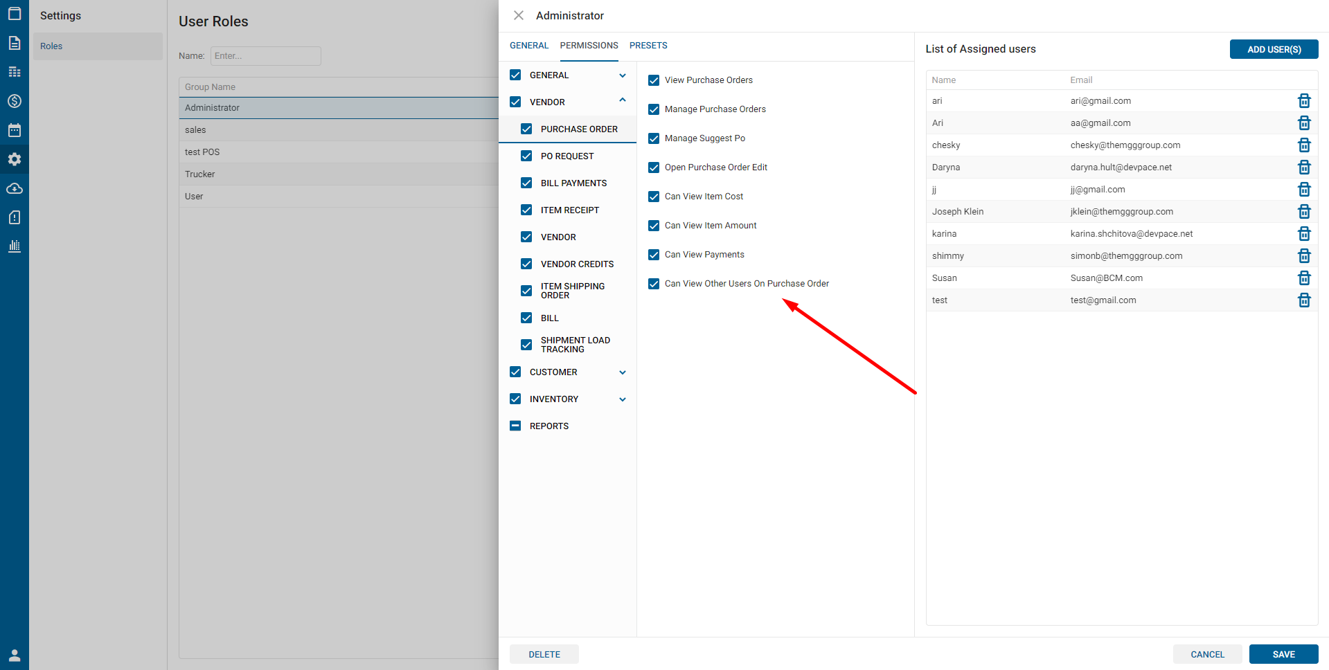 - if the user has checked the “Can View other Users on Purchase Order Requests” checkbox -> the user has the ability to change user;