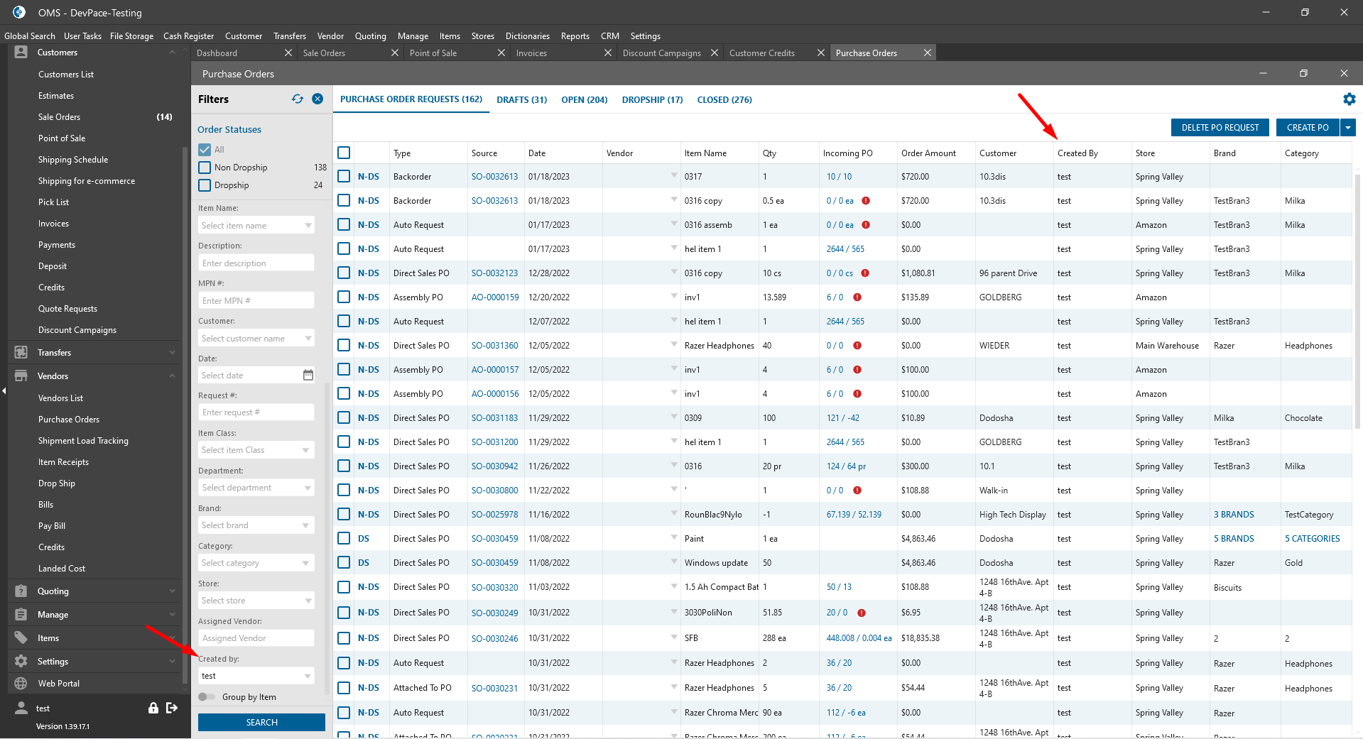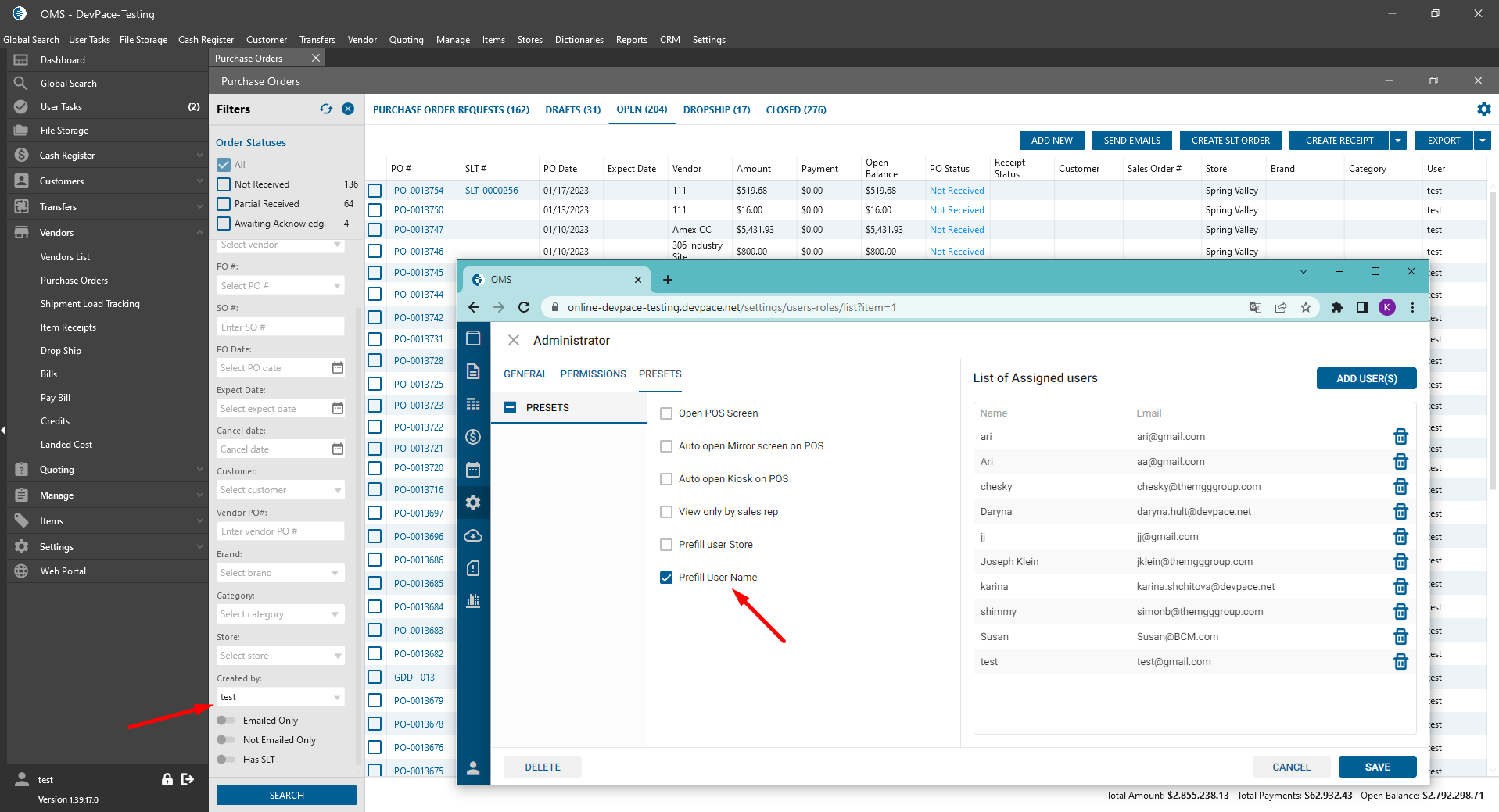 - the user is prefilled -> in the “Created by” drop-down on the Purchase list.