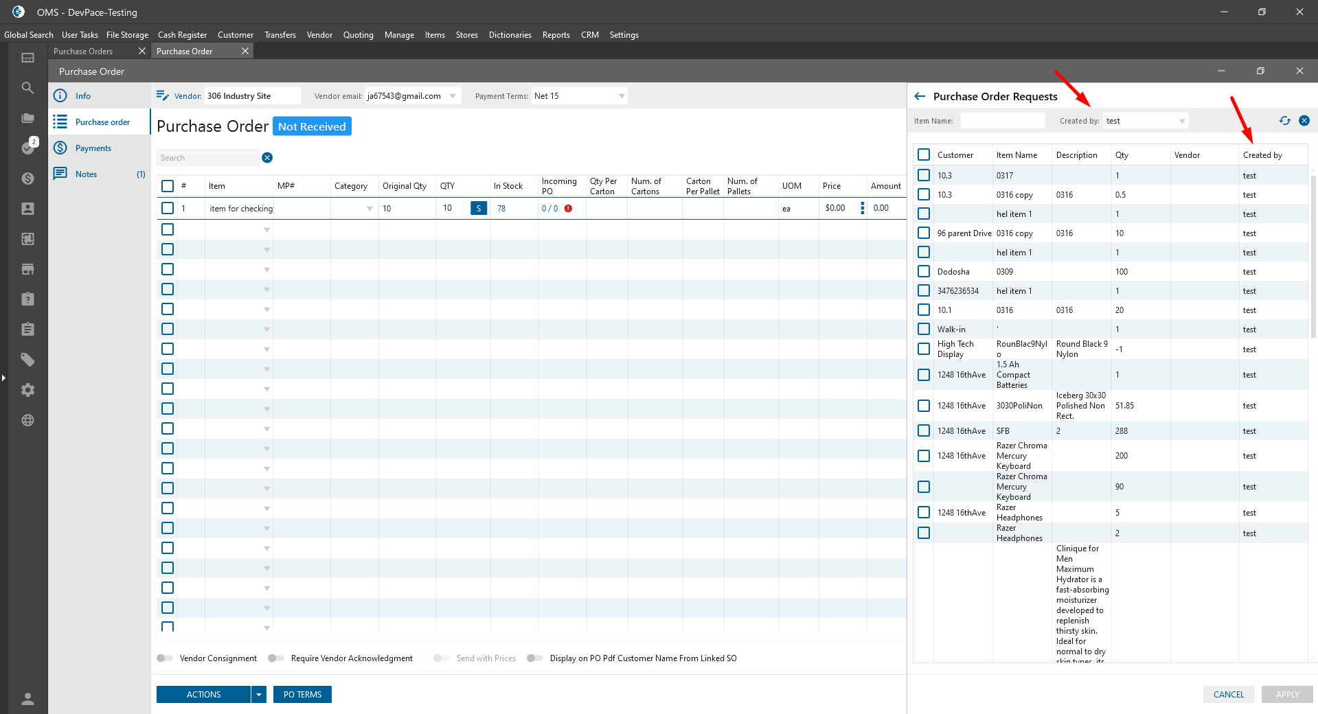 - this logic also was added for the Purchase Order edit form -> Purchase Order Requests panel.