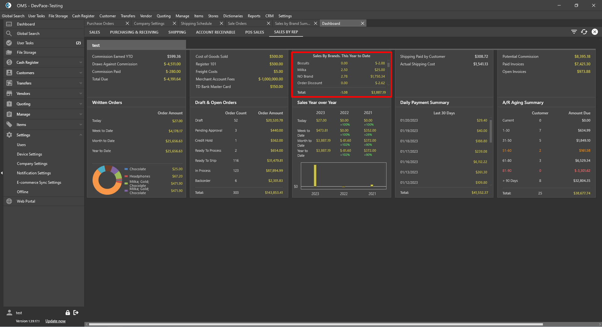 Dashboard -> Sales by Rep -> Sales by Brand. This year to Date: