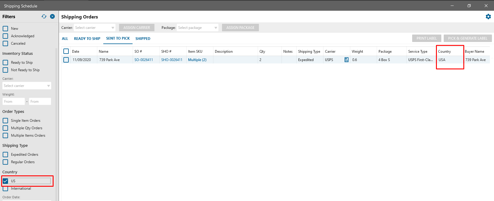 Shipping Schedule e-commerce. Filtering by Country should work like this: