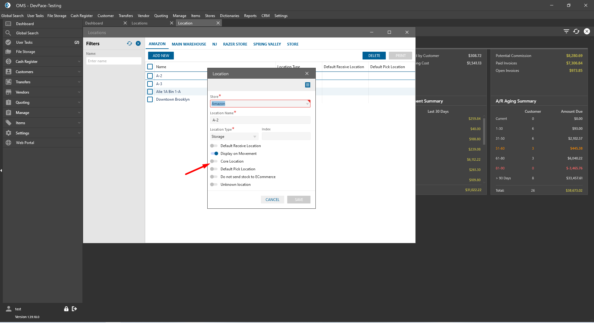 - item was received on “Location From” = “Core location” (Core Location Qty > 0 ) and qty in “Location To” < “Replenishment Qty” on item: