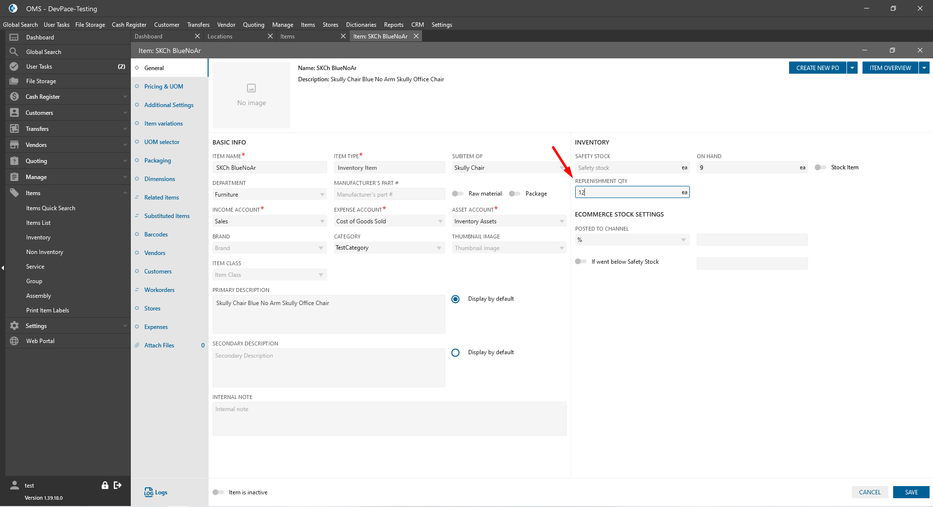 - if on Item Edit -> Stores -> Replenishment qty is empty -> is used -> Item edit -> General Tab.