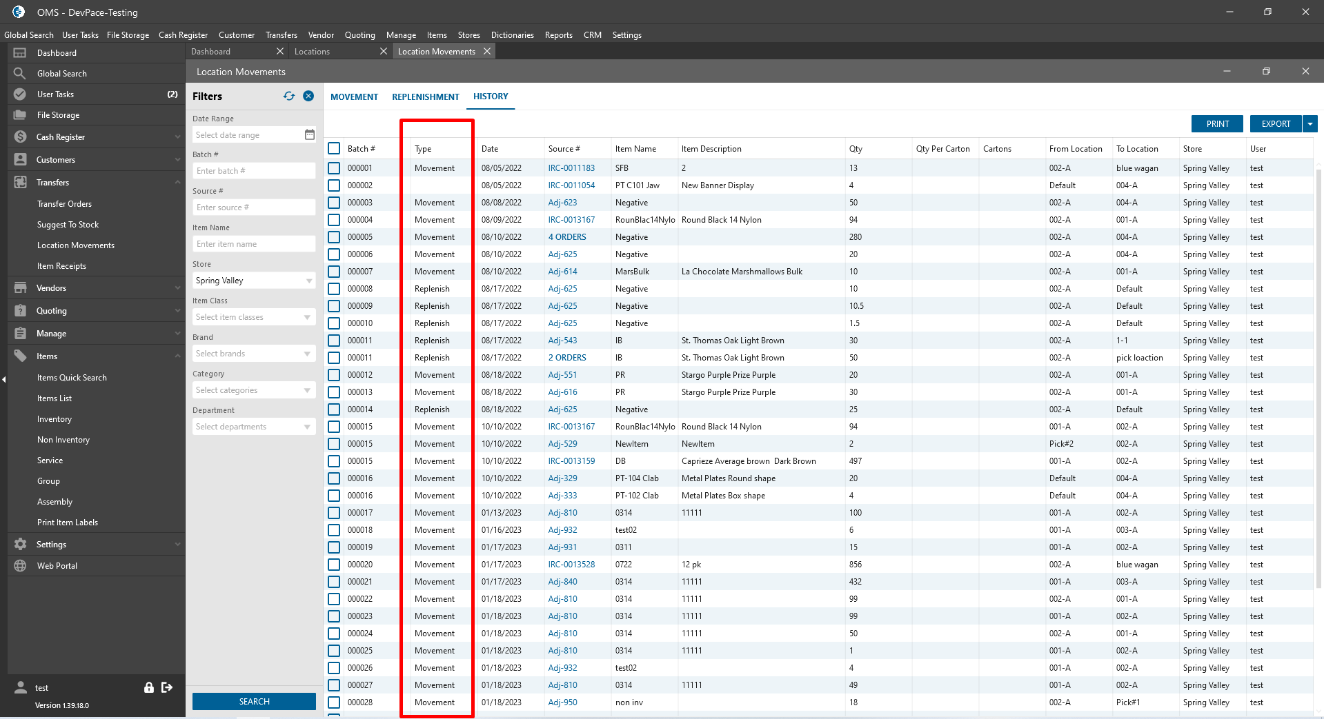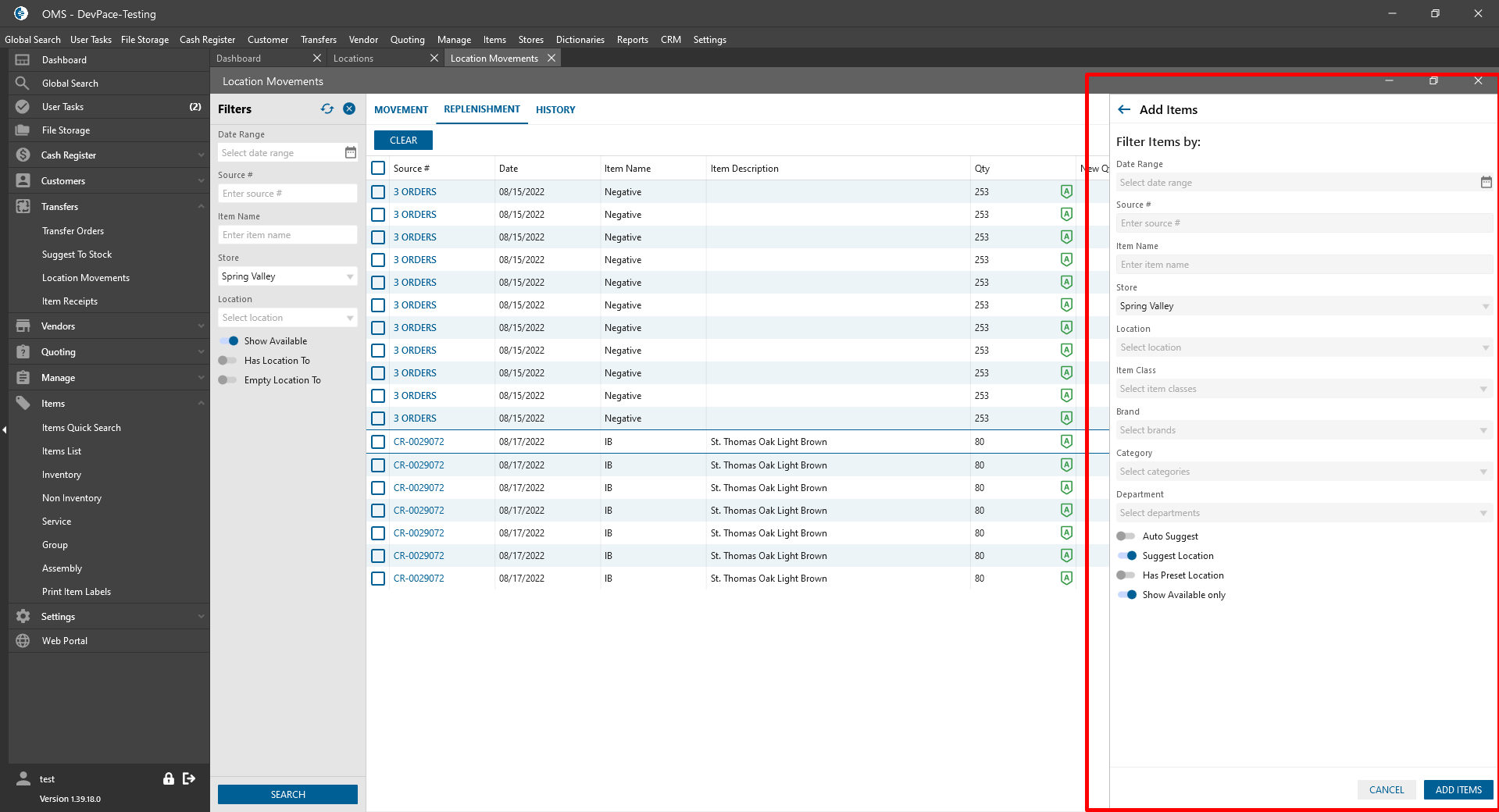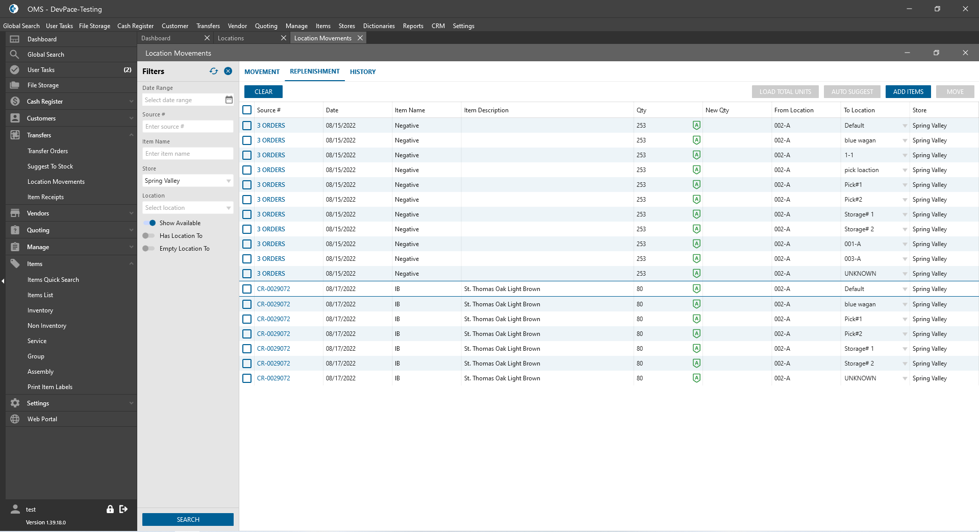 - to the datagrid will be added items which were received on “Location From” = “Core location” (Core Location Qty > 0 ) and qty in “Location To” < “Replenishment Qty” on item: