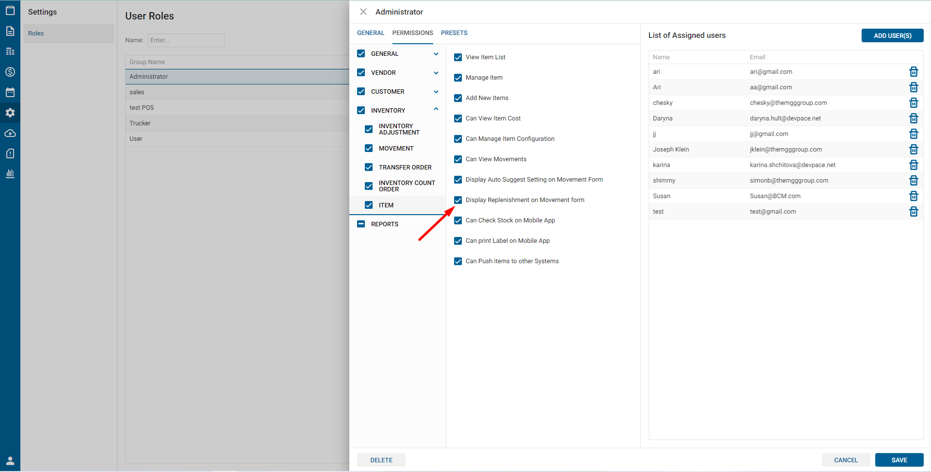 - the “Replenishment” tab isn’t displayed on datagrid;