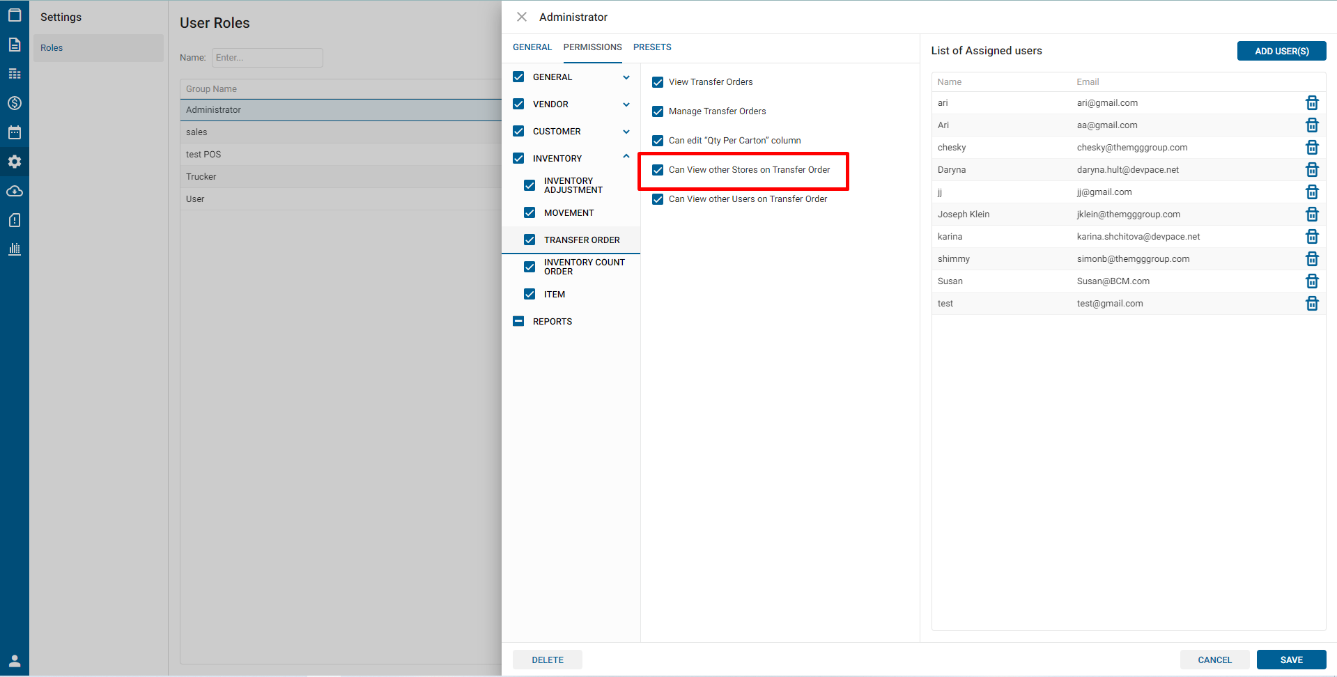 - was added to the “Inventory List” -> “Transfer Order” block;