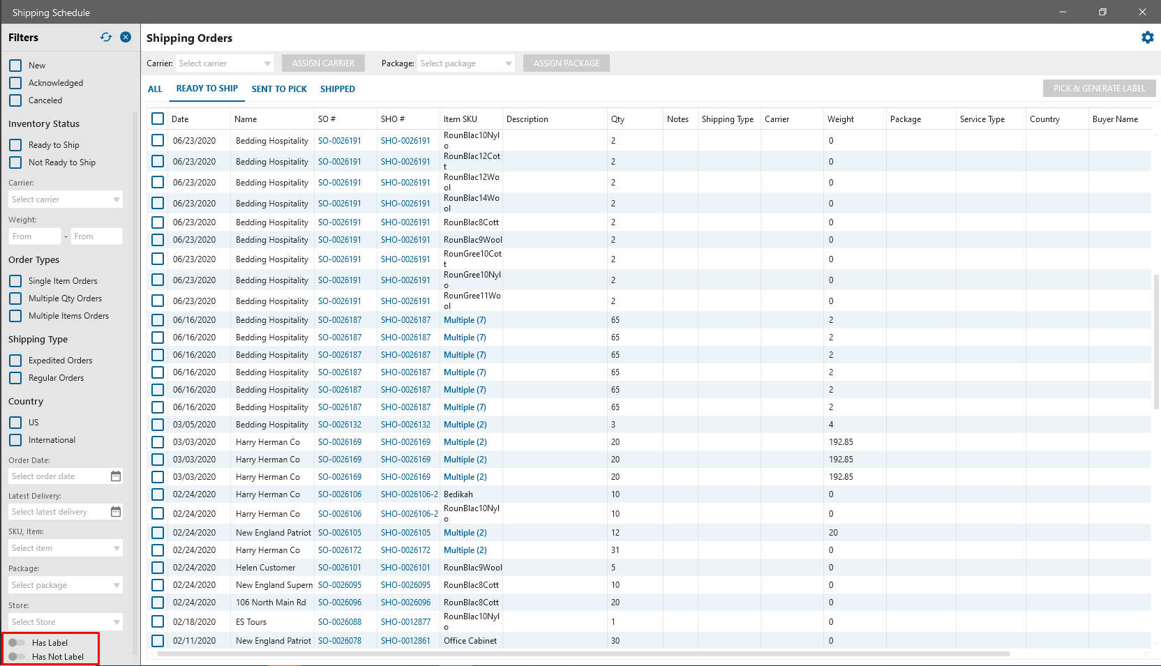 On the Shipping Schedule form has been added ability to filter data by checkboxes “Has Label” and “Has not Label”