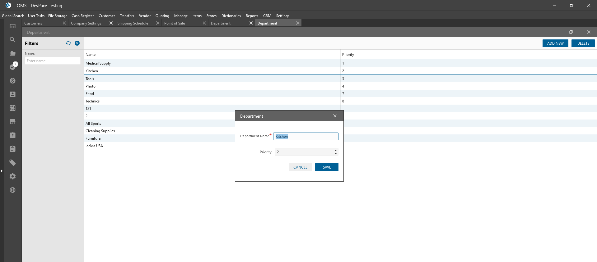 - The priority value is showing the order of Departments on drop-downs: