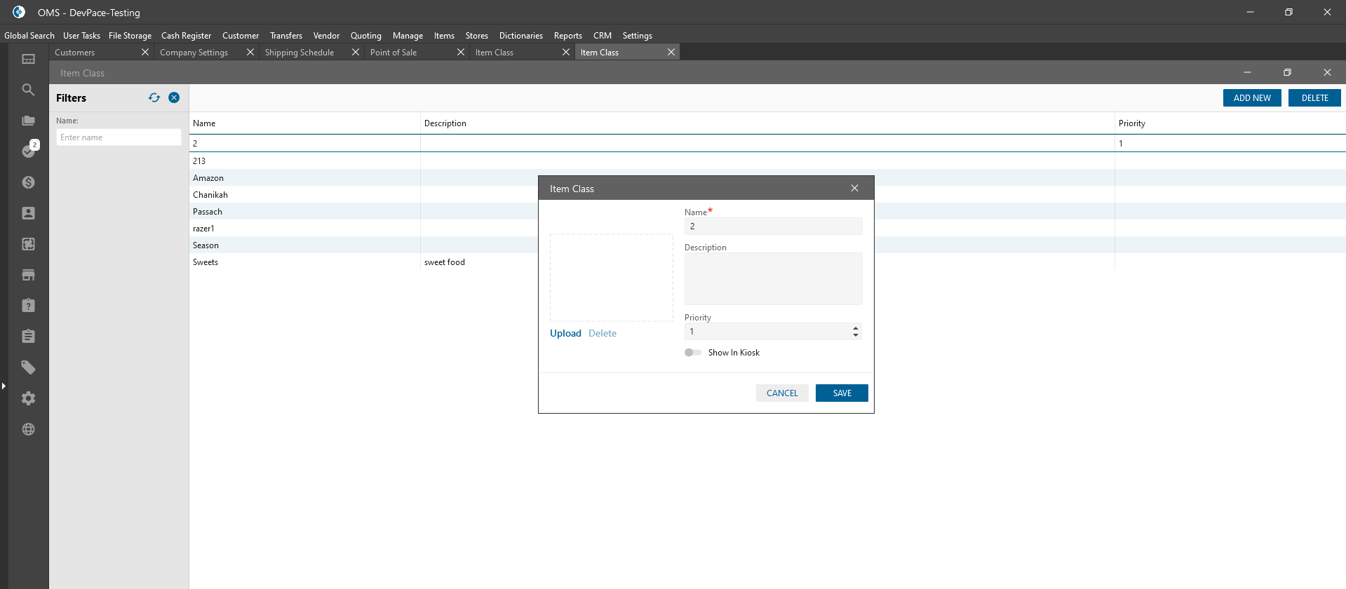 - The priority value is showing the order of Item Classes on drop-downs: