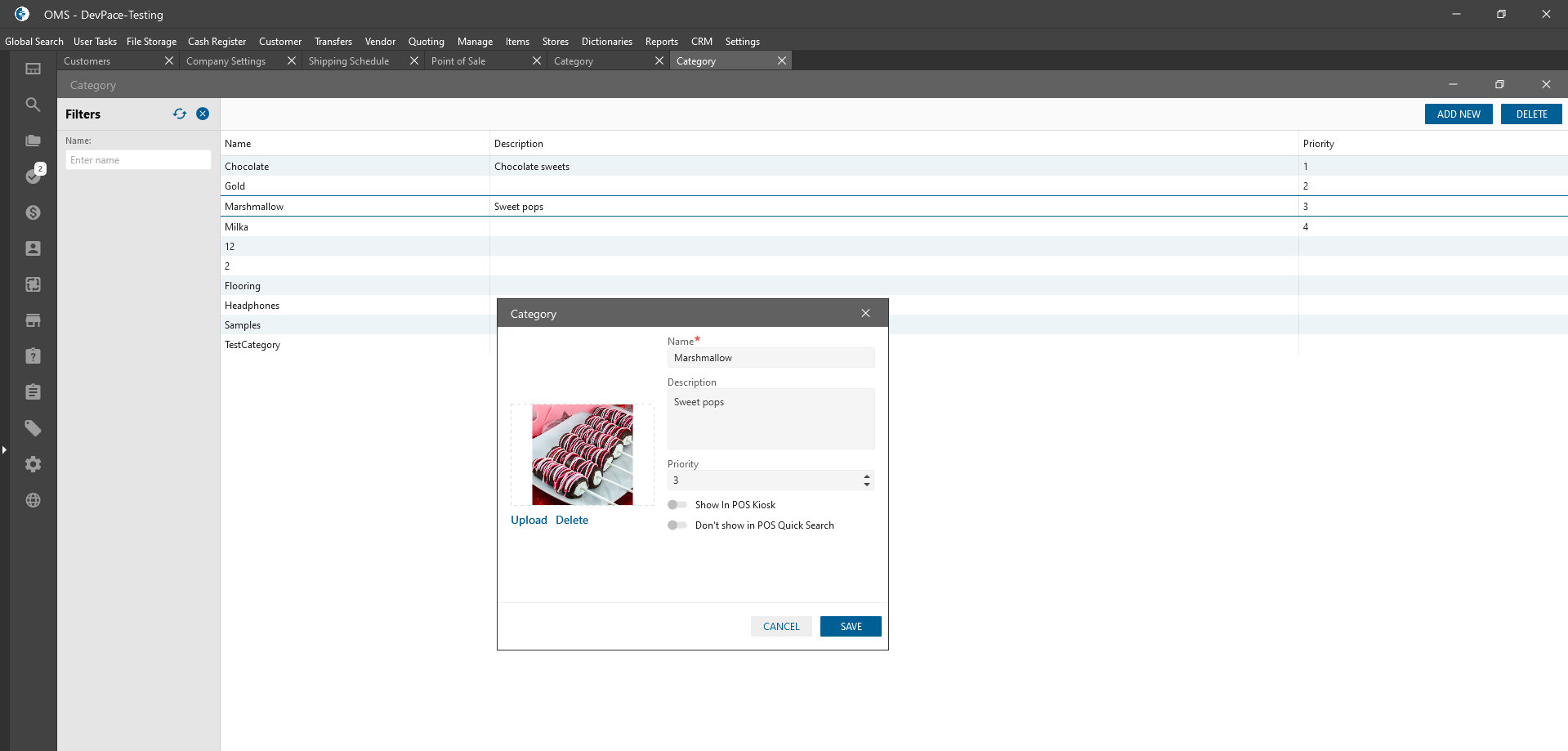 - is displayed Category Priority;