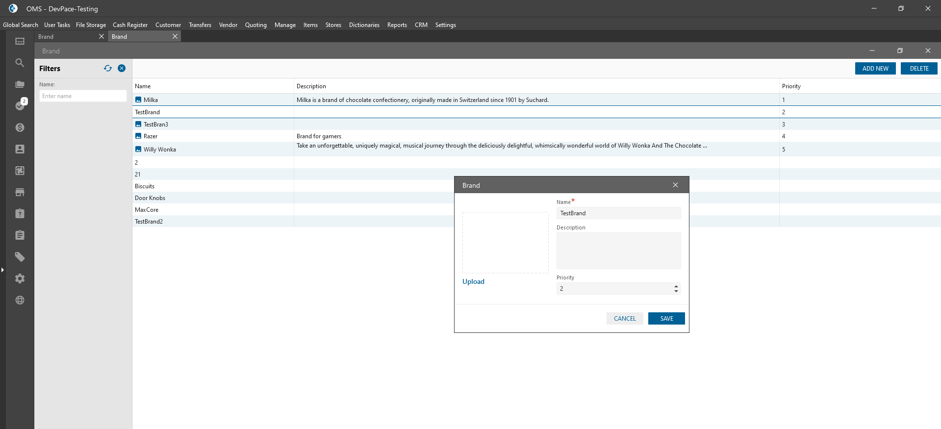- The priority value is showing the order of Brands on drop-downs: