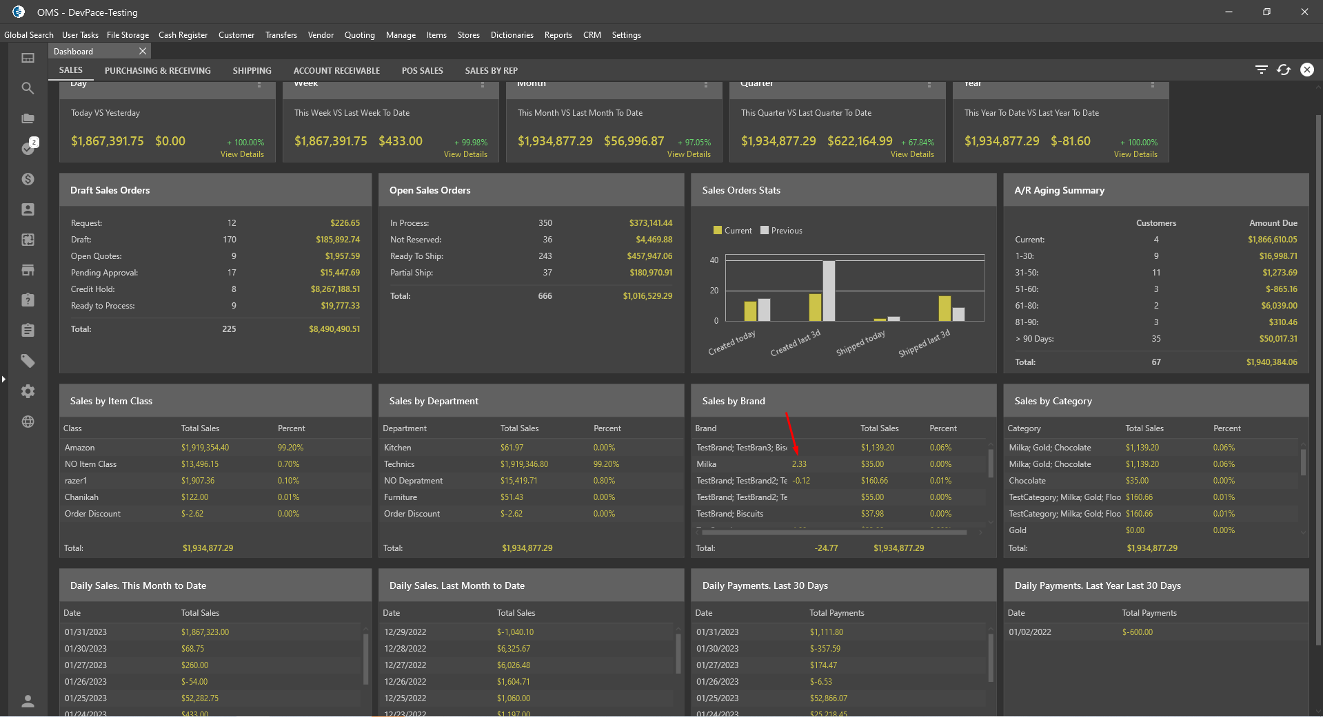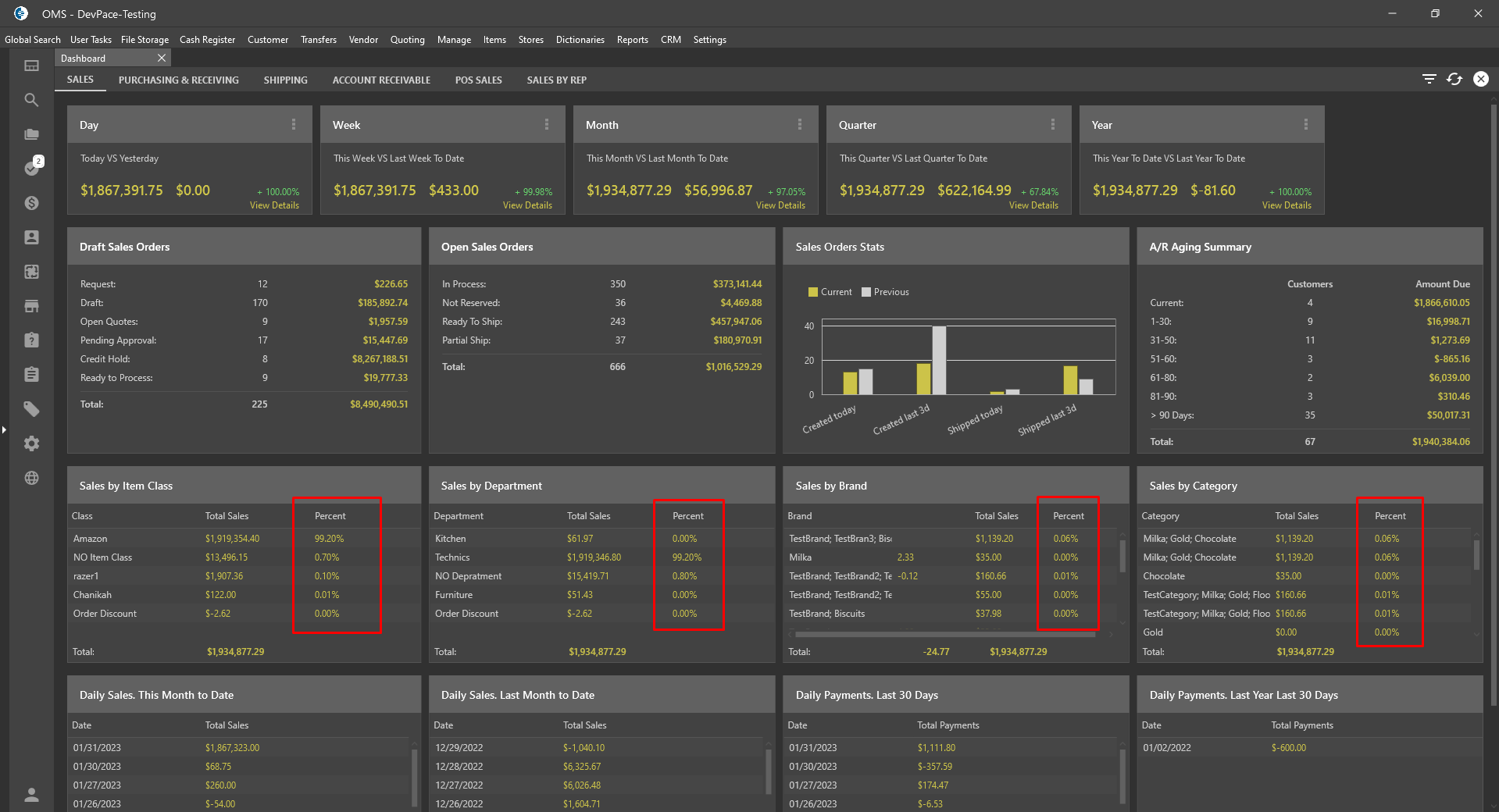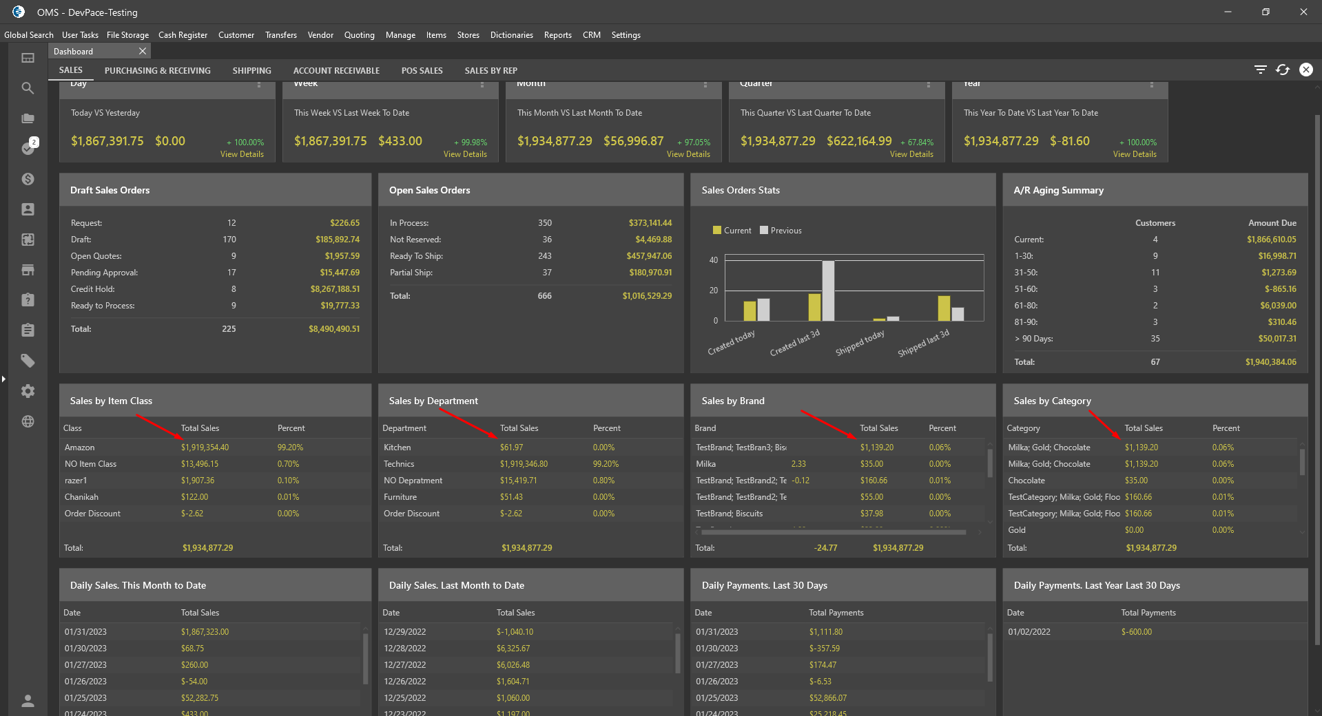 - Sales by Item Class / Sales by Department / Sales by Brand / Sales by Category Statistics:
