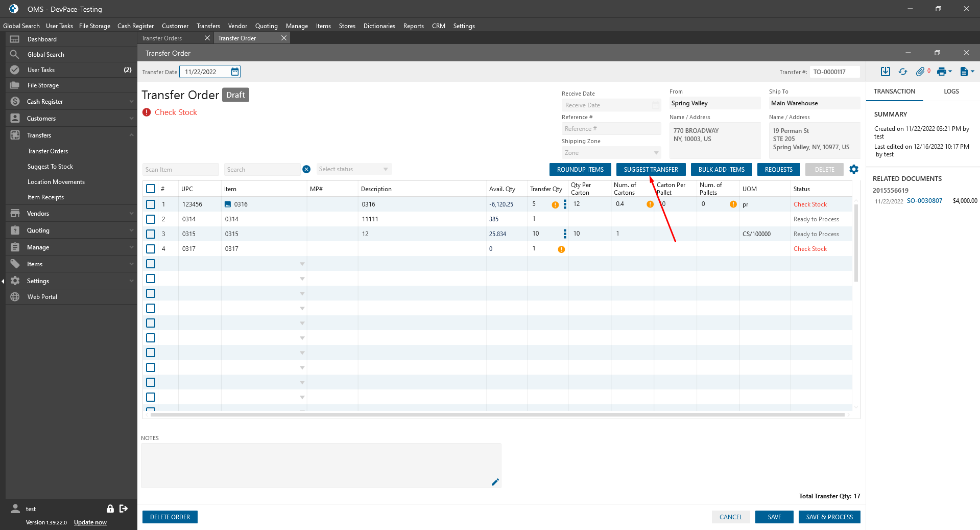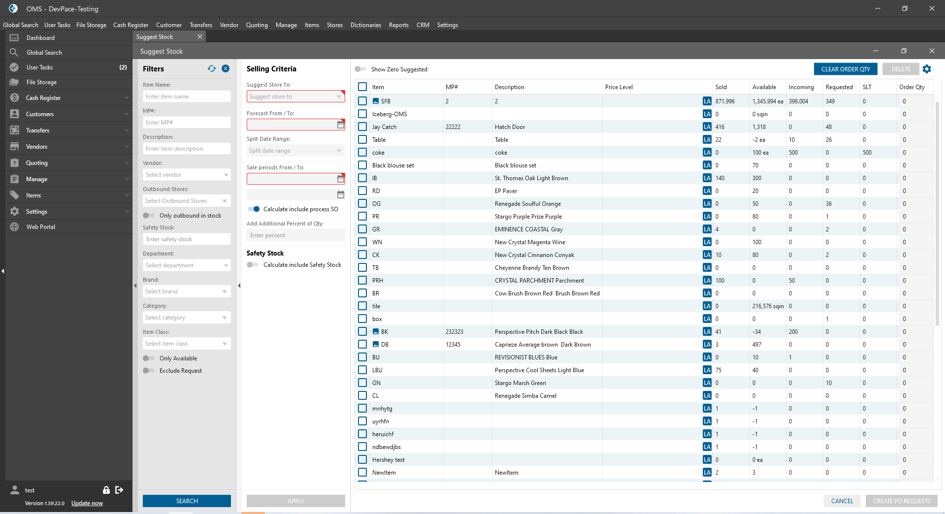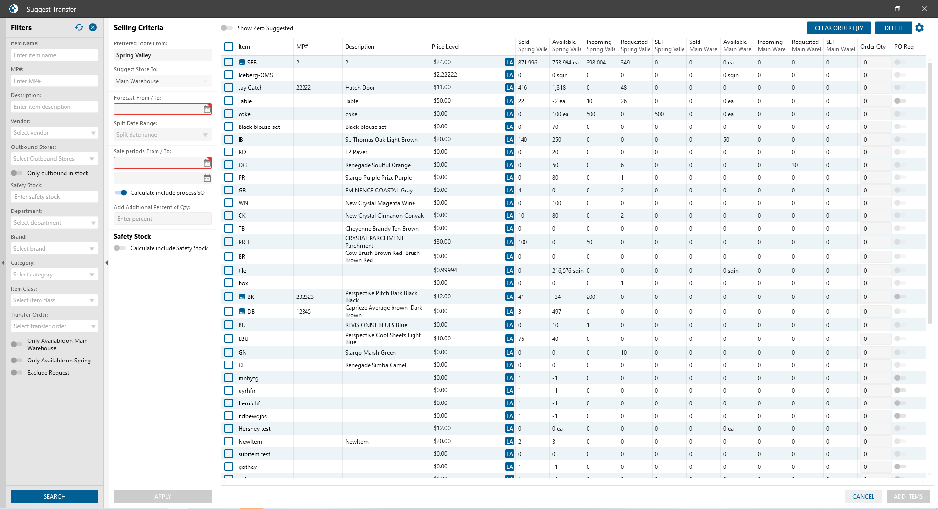 - is displayed the “Suggest Stock” pop-up as on the Item List, but with some changes: