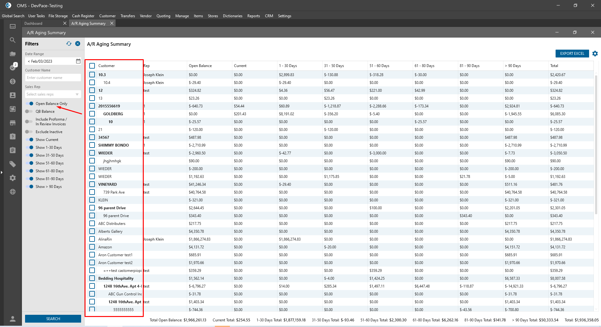 - “Open Balance Only” checkbox: