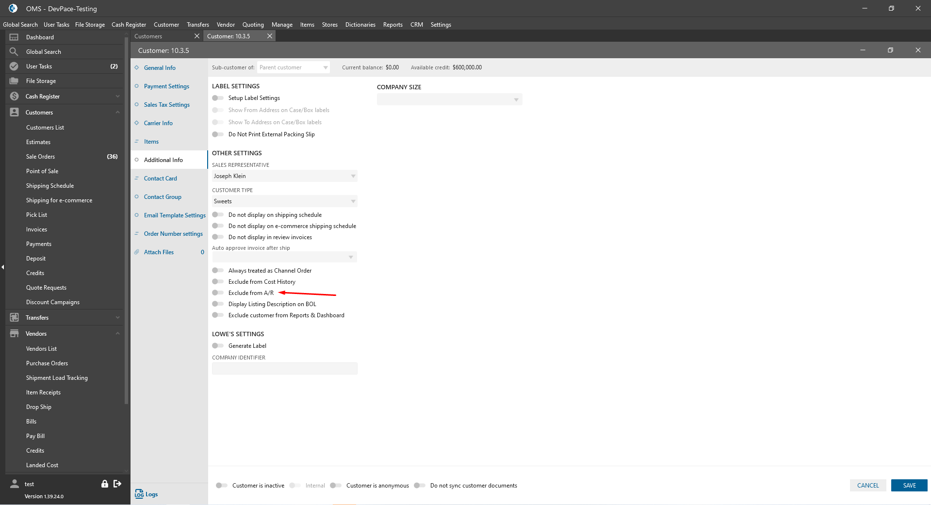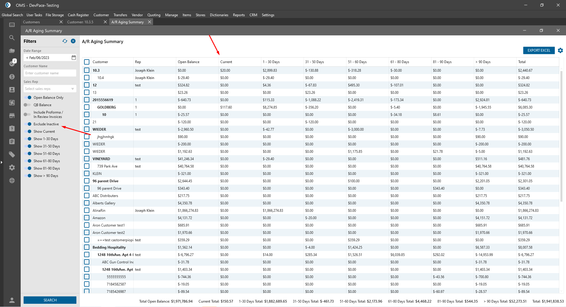 - if the checkbox is checked -> in the Datagrid of the A/R Aging Summary Report this Customer isn’t displayed.