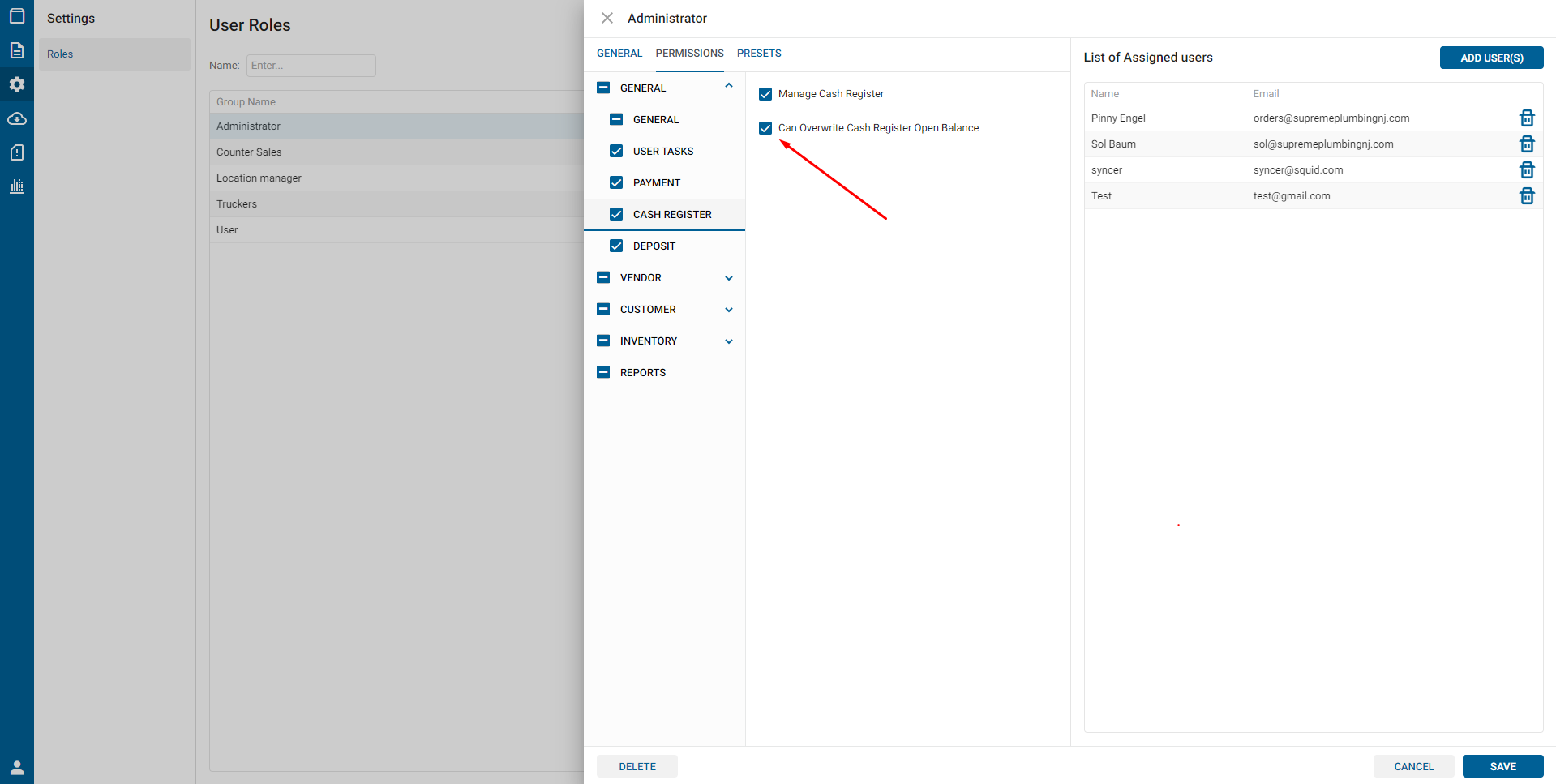 Cash Register edit form / Store edit form / Choose Cash Register: