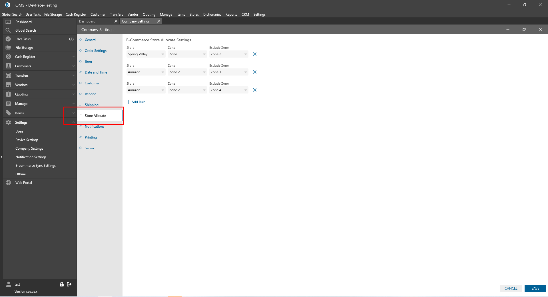 - if the system does not find the customer’s zip code address in the same zone as checked additional stores -> system always allocates the item from the main Store;