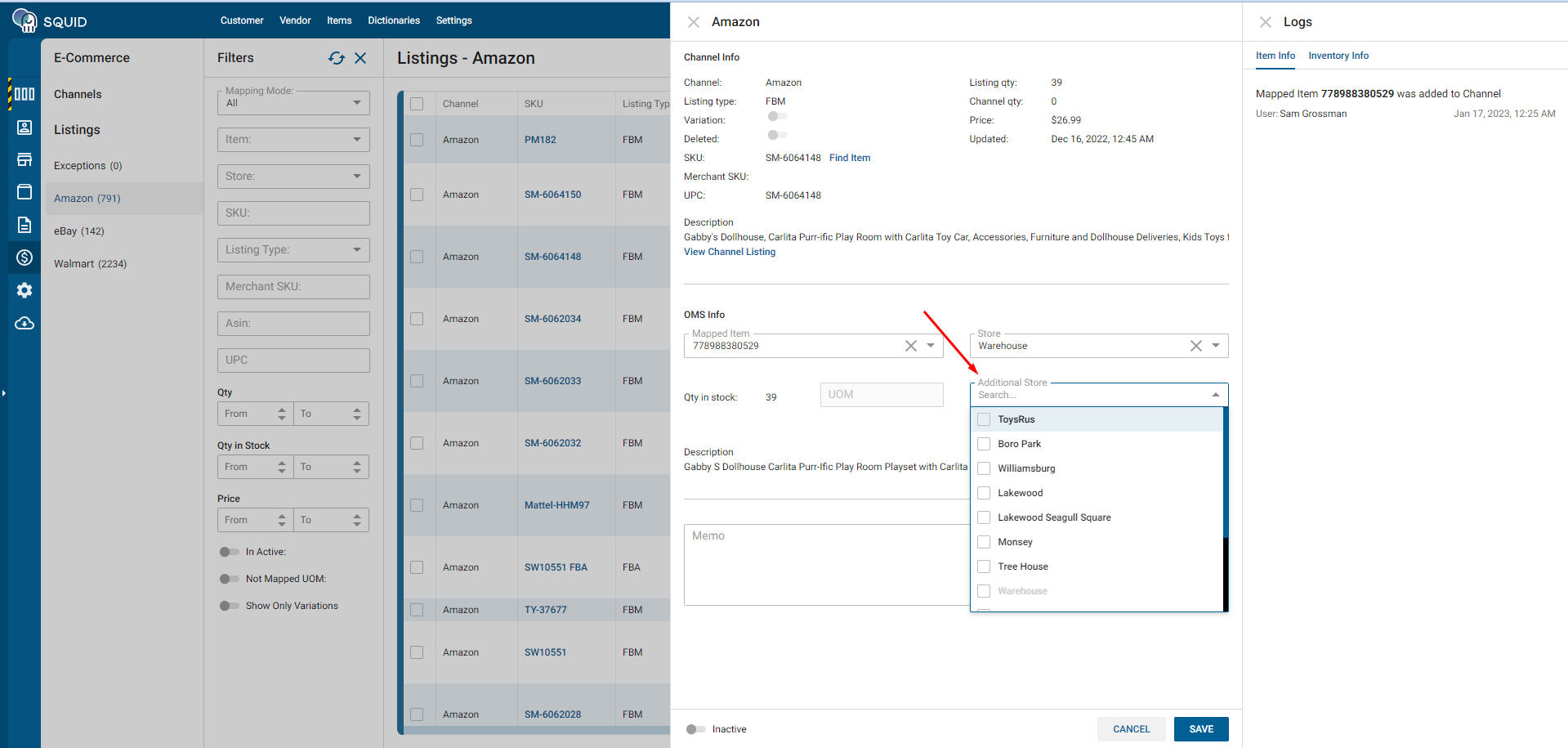 OMS Web -> E-Commerce -> Listings: