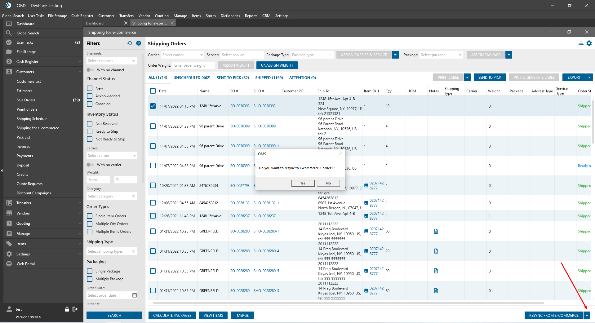 - Text: “Do you want to resync to E-Commerce [N] Orders?”;