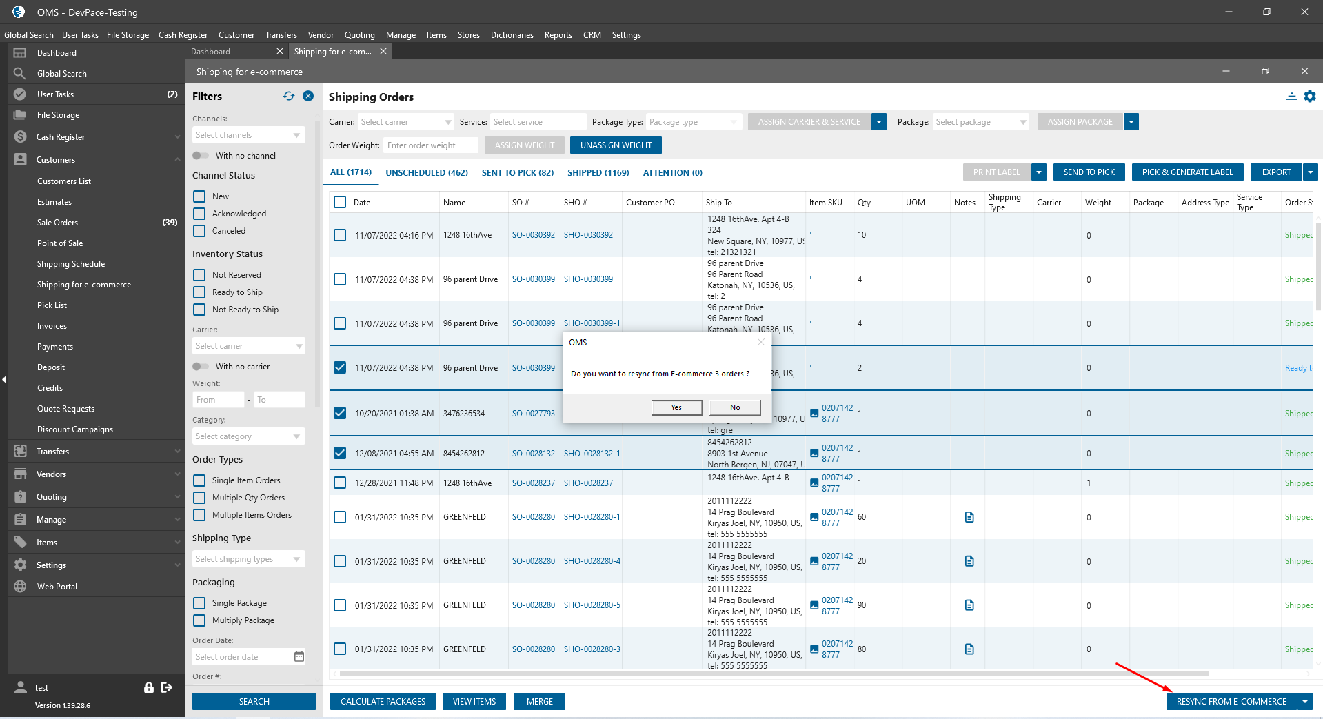 - Text: “Do you want to resync from E-Commerce [N] Orders?”;