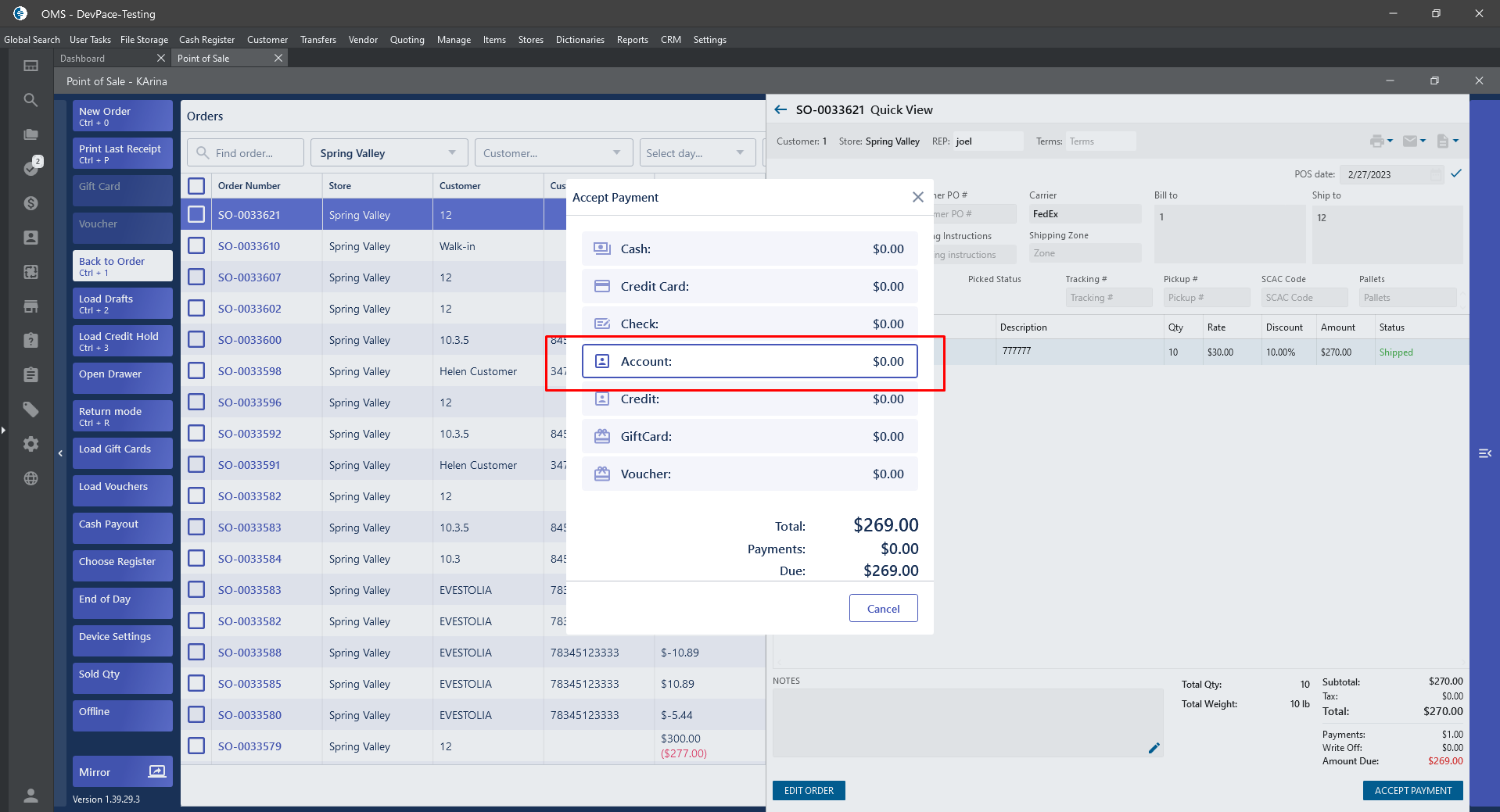 - the user clicks on the “Accept Payment” button -> “Account” button: