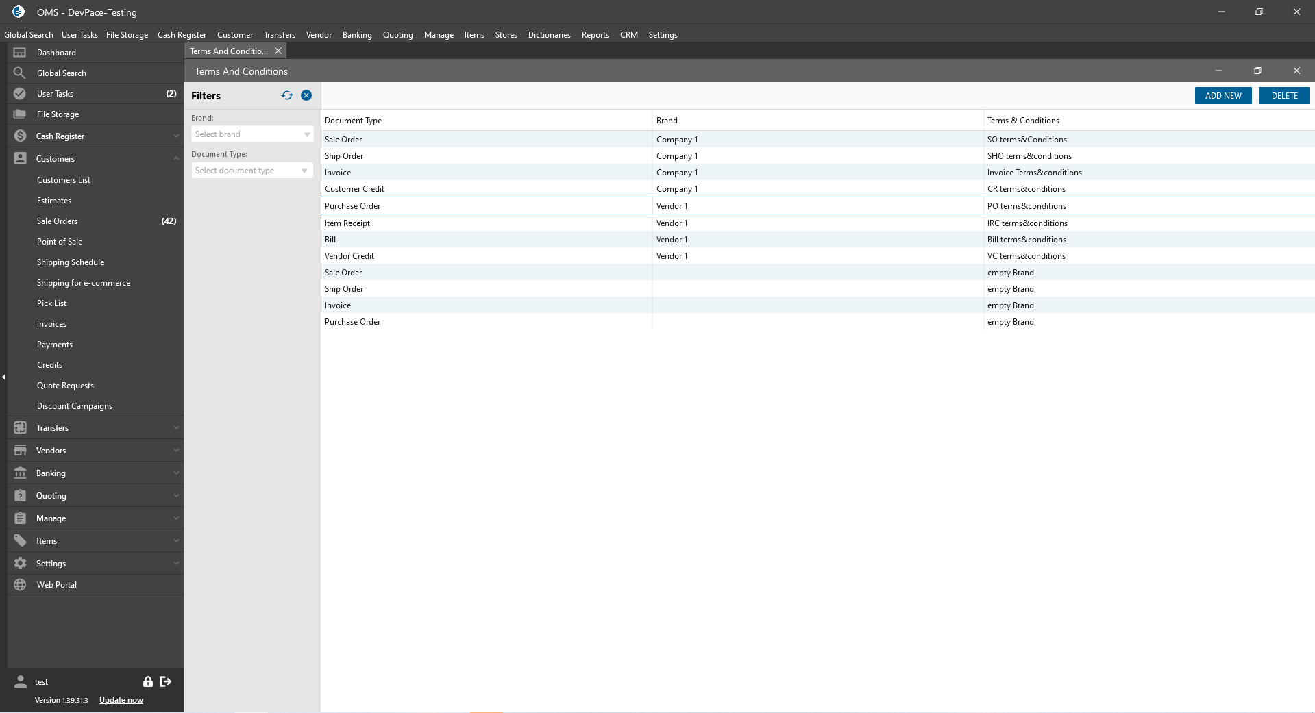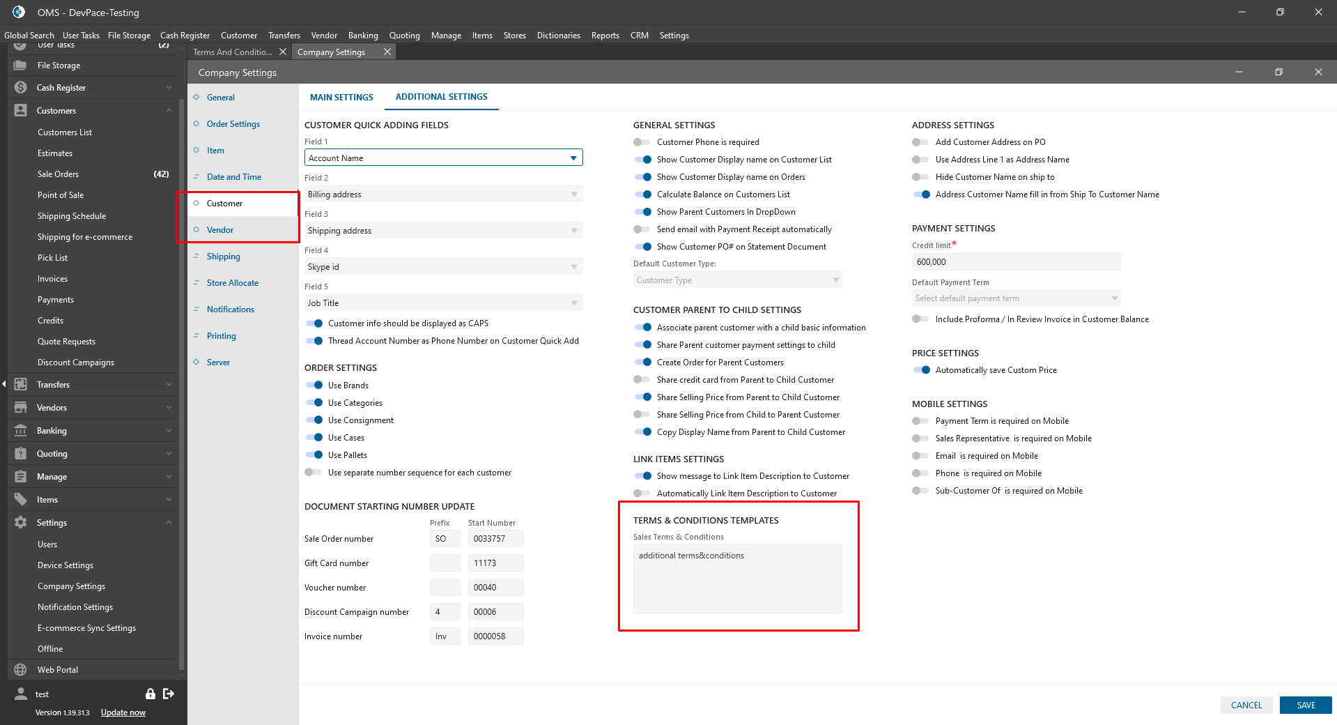 - if Terms & Conditions don’t use for any Orders -> is displayed OMS Message: