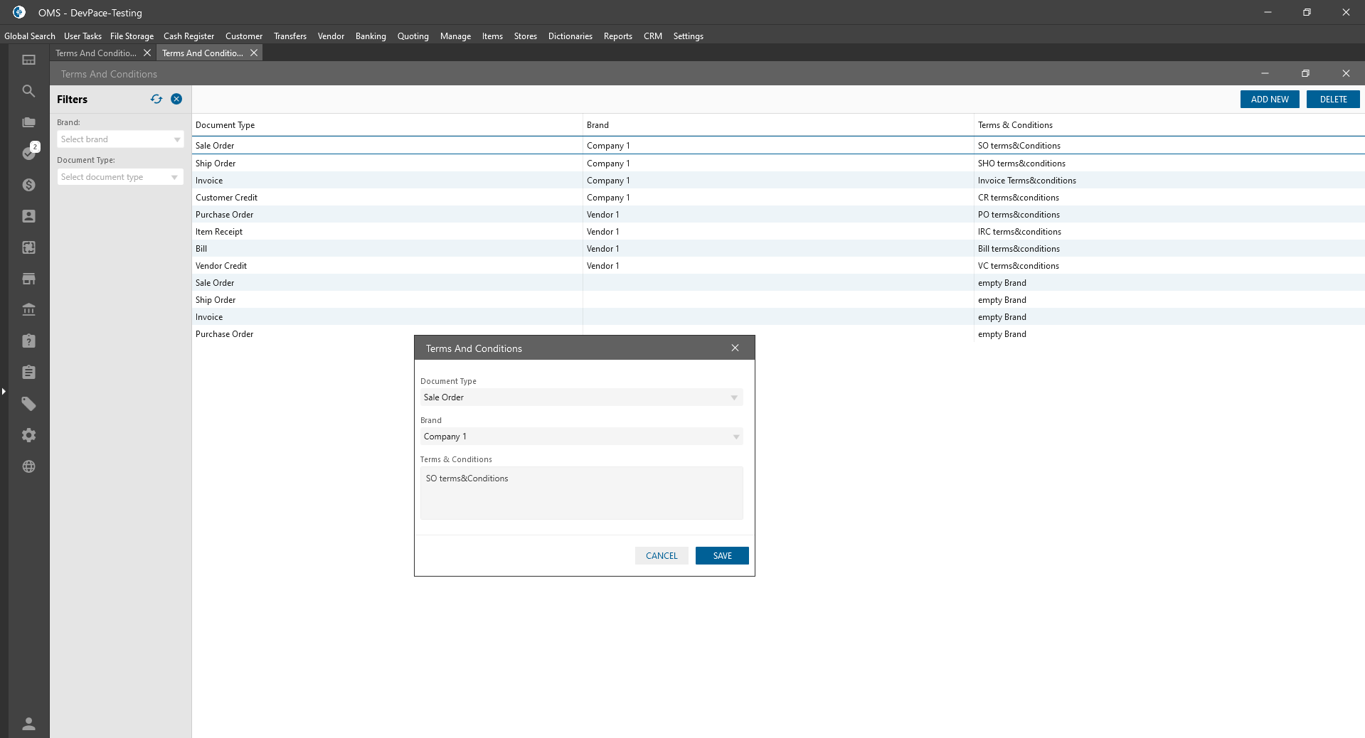 - after clicking on the item line -> is opened “Terms & Conditions” edit form;