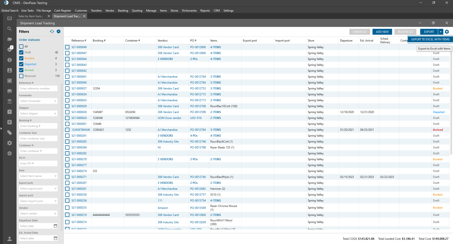 - Total Landed Cost;