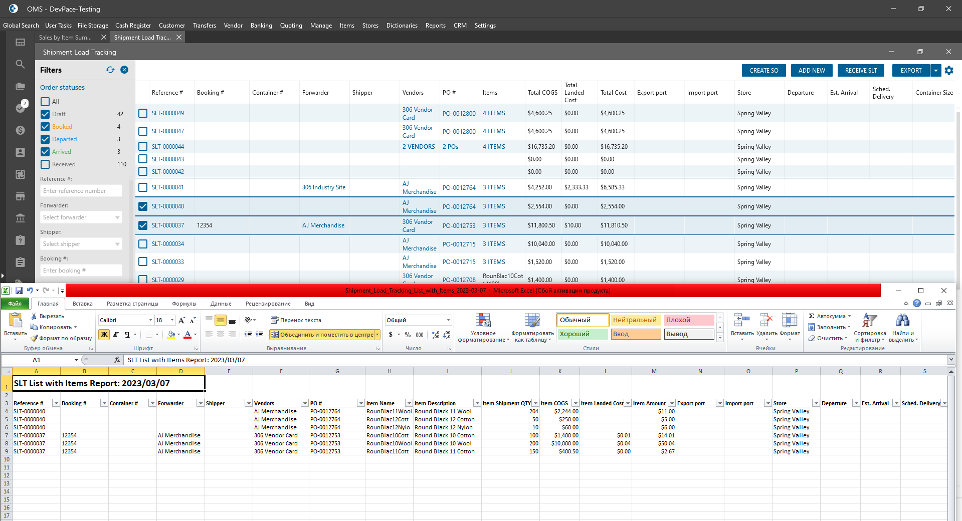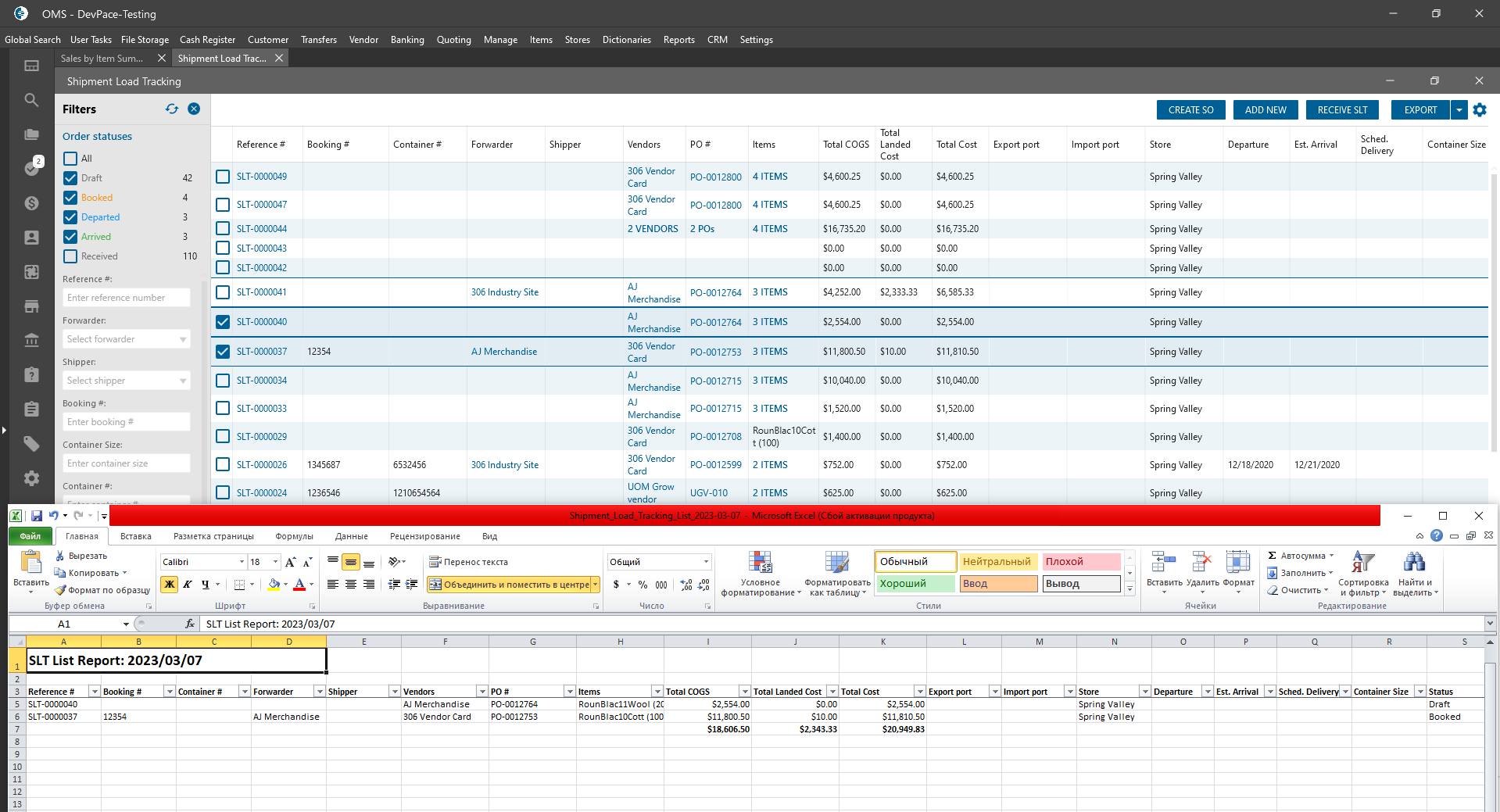 Shipment Load Tracking List form: