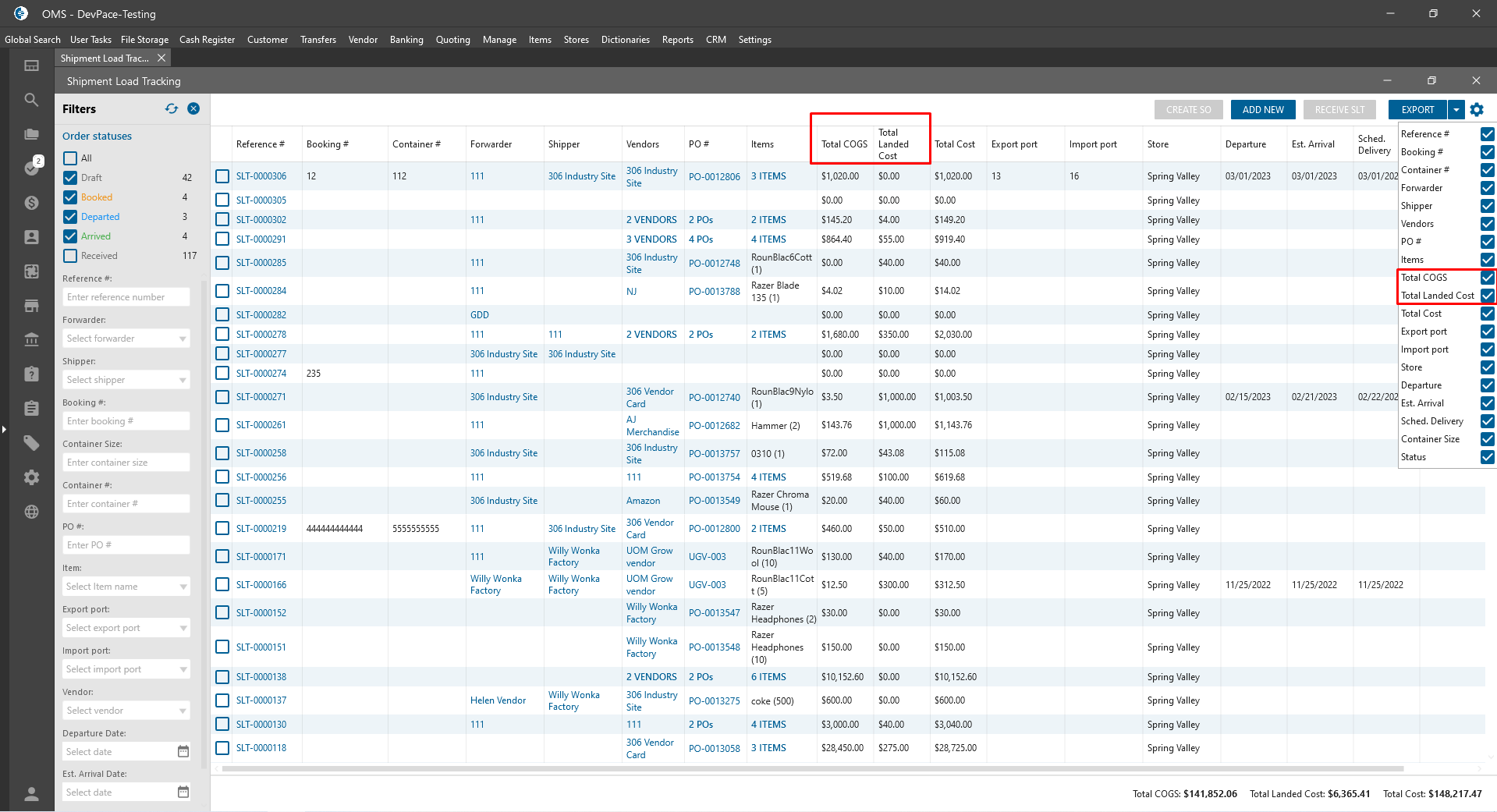 - if the permission “Can View Landed Cost” is switched on -> the column is displayed;