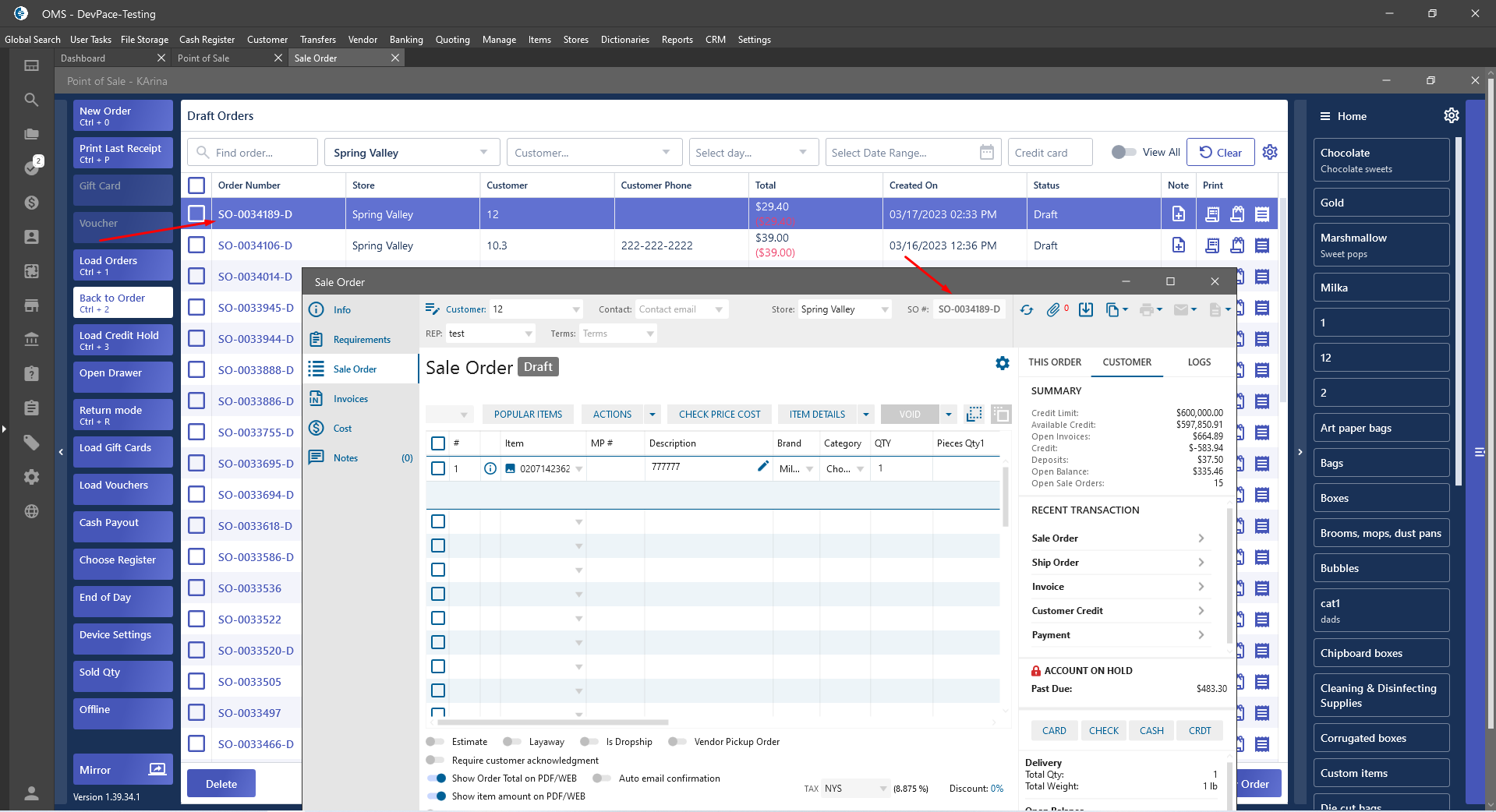 The “Load Drafts” button on the Point of Sale