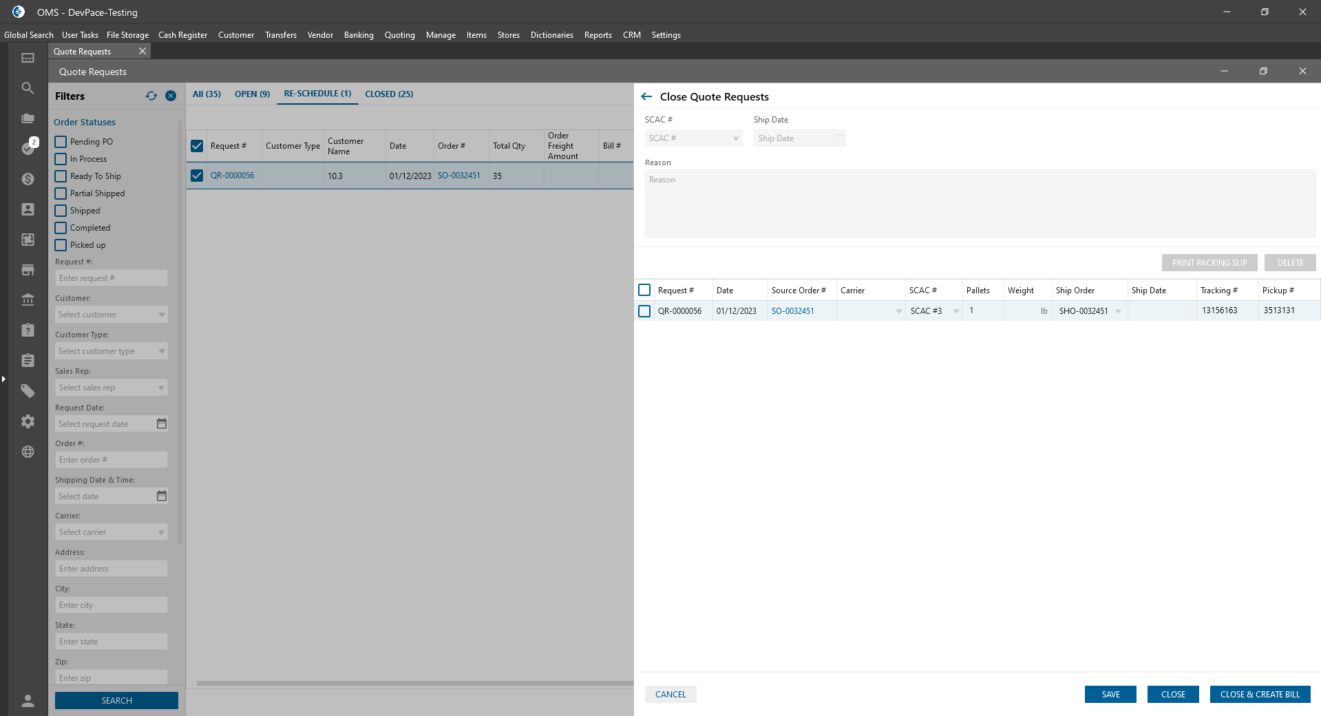 - is opened “Close Quote Requests” panel -> as on the Open tab: